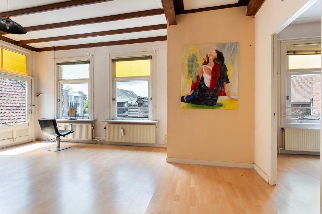 De onroerende zaak bestaat uit een winkelruimte (150 m²) op de begane grond alsmede een extra bijgebouw van 74 m², verdeeld over twee bouwlagen. De voormalige bovenwoning (eerste en tweede verdieping) komt voor opwaardering in aanmerking. Het geheel beschikt over een zelfstandige achteringang (vanaf de Achterstraat) en beschikt over een afgesloten buitenruimte alsmede een parkeerplaats op eigen terrein.