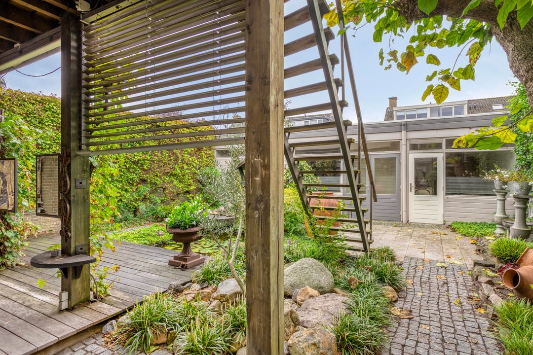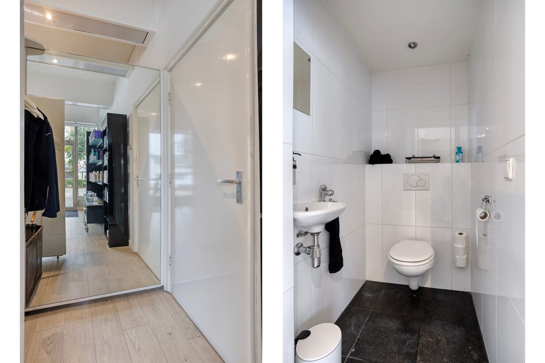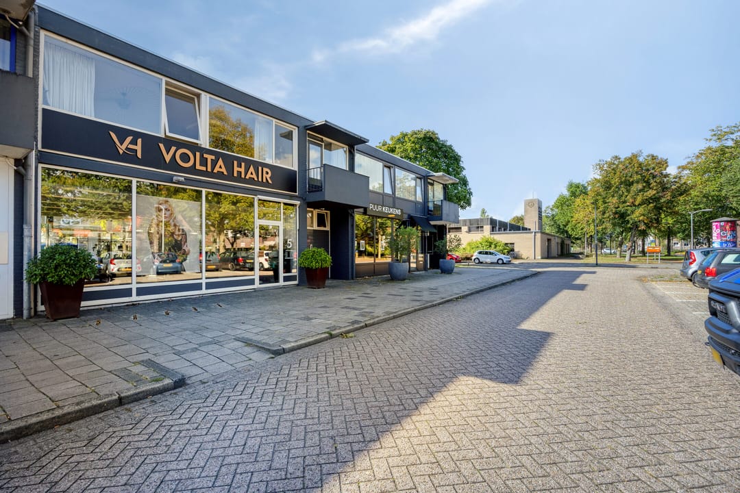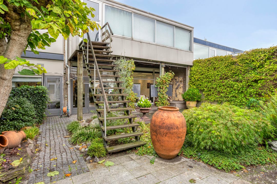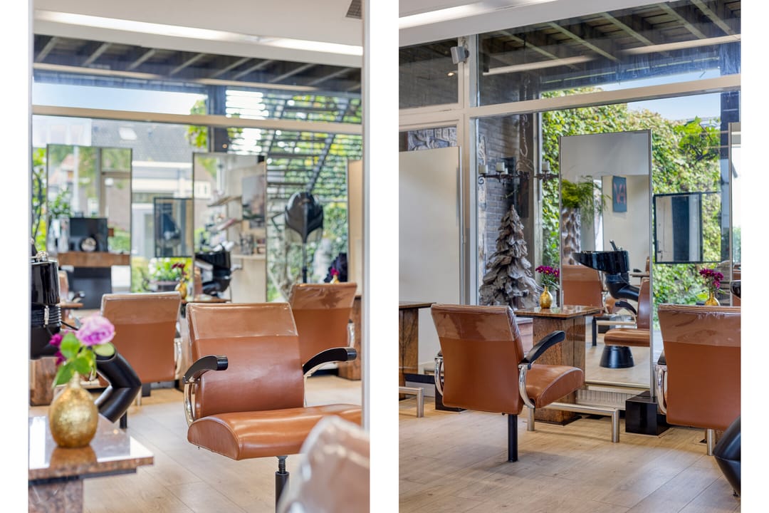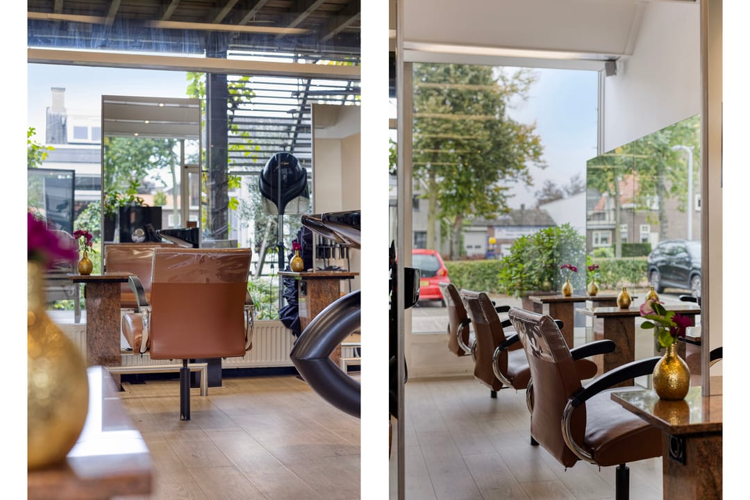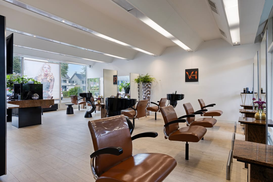 Op de begane grond is de kapsalon gesitueerd, met een verhuurbaar oppervlakte van circa 114 m². De ruimte is modern afgewerkt, met een stijlvolle vloer, geïntegreerde verlichting, airconditioning en luxe meubels. beschikt over een uitstekende lichtinval door de royale raampartijen aan de voorzijde. U heeft directe toegang tot de sfeervolle binnentuin met vijver waarachter de kantoorruimte en opslagruimte is gelegen.