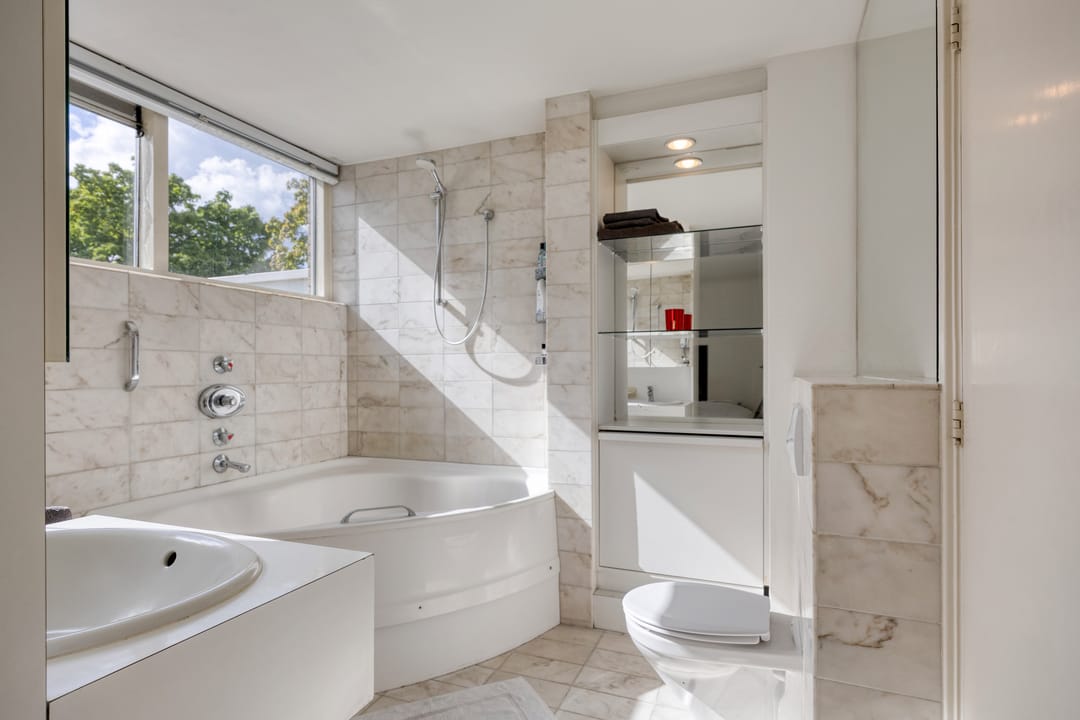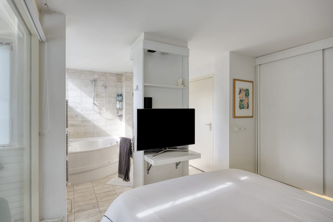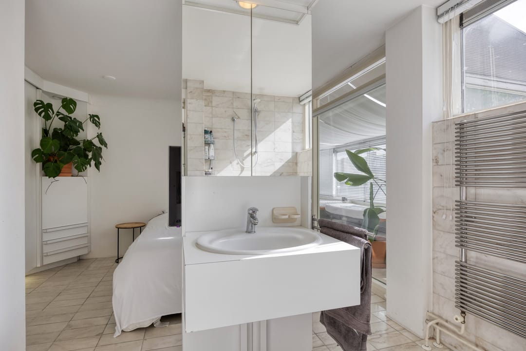 Op de eerste verdieping is het appartement gelegen met een oppervlakte van circa 101 m². Het appartement is zeer sfeervol afgewerkt en bevat mooie details waaronder een open haard en inbouwkast. De keuken is voorzien van de benodigde inbouwapparatuur. Het appartement beschikt over 2 slaapkamers. Één slaapkamer heeft een open verbinding met de badkamer voorzien van bad, douche, wastafel en toilet. De tweede slaapkamer beschikt over inbouwkasten en aansluitingen voor de wasmachine.