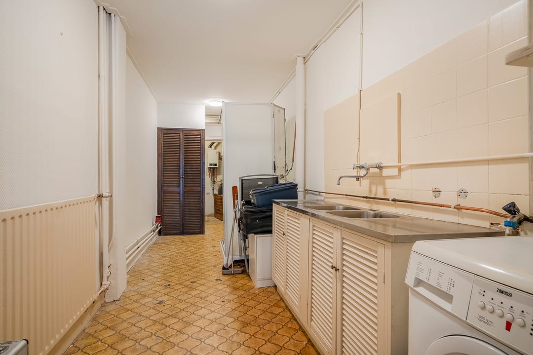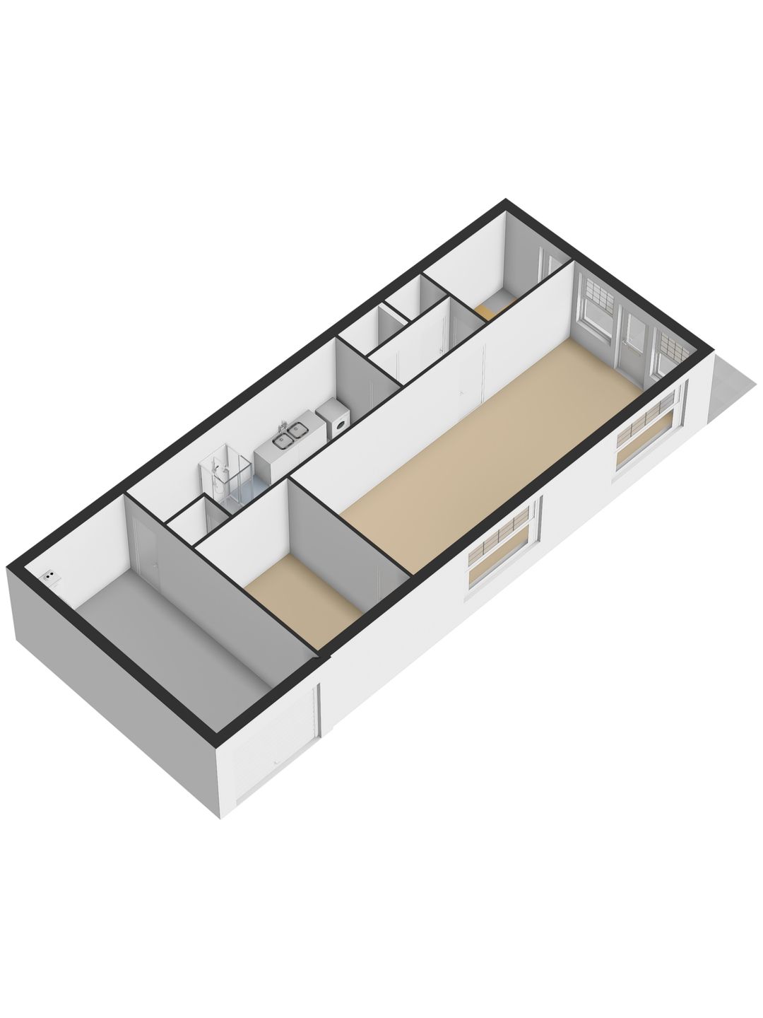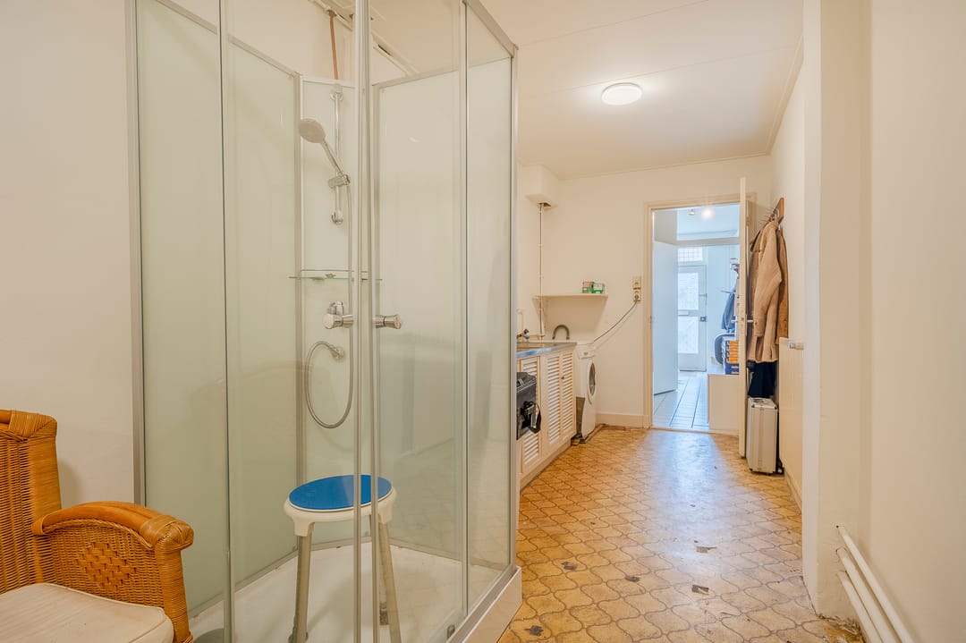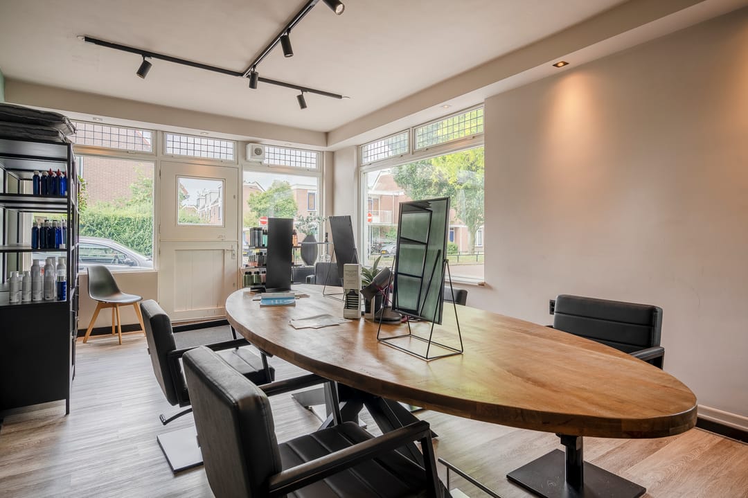 Op de begane grond bevindt zich een winkelruimte van circa 70 m² verhuurbare vloeroppervlakte, die sinds 2019 grotendeels wordt gehuurd door Abbey’s, een kapsalon en schoonheidssalon. De ruimte is casco verhuurd, waarbij de huidige huurder zelf heeft zorggedragen voor de afbouw. De huurovereenkomst loopt tot 1 januari 2027 en wordt daarna telkens stilzwijgend met één jaar verlengd, tenzij tijdig wordt opgezegd met een opzegtermijn van 6 maanden. De maandelijkse kale huur bedraagt € 901,80 exclusief BTW. Daarnaast wordt er een voorschot voor gas, water en elektra in rekening gebracht van € 250,- exclusief BTW. De huurder huurt enkel de winkelruimte, inclusief de kelderkast en het toilet in de hal, waardoor de inpandige garage toegankelijk blijft voor de (toekomstige) eigenaar van de bovenwoning.