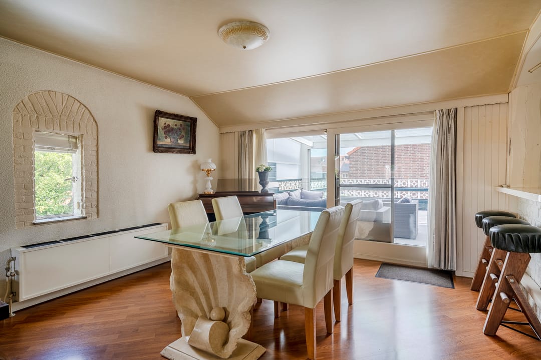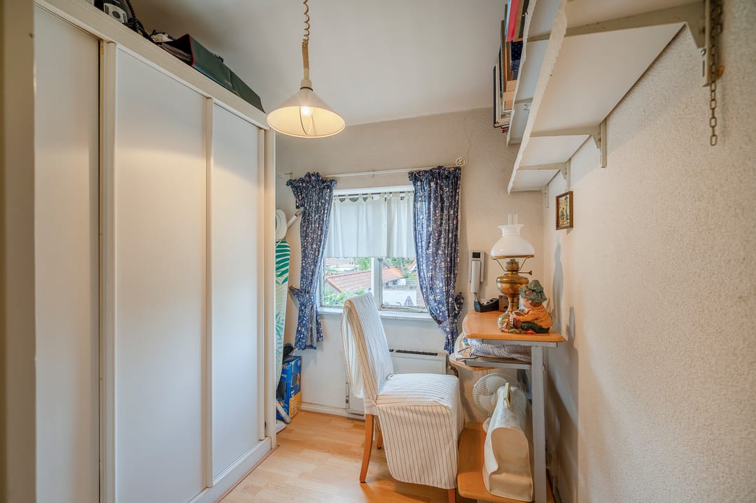 De lichte woonkamer beschikt over grote raampartijen die zorgen voor een prettige daglichtinval en biedt directe toegang tot de serre. De ruime keuken, voorzien van een krachtige airco-installatie die voldoende capaciteit heeft om de gehele woonkamer te koelen, heeft een fraai uitzicht over het buitenterras. Verder treft u op deze verdieping een separaat toilet en een extra kamer die uitstekend kan dienen als kantoor of hobbyruimte. Vanuit de serre bereikt u het royale dakterras met bijbehorende berging.
