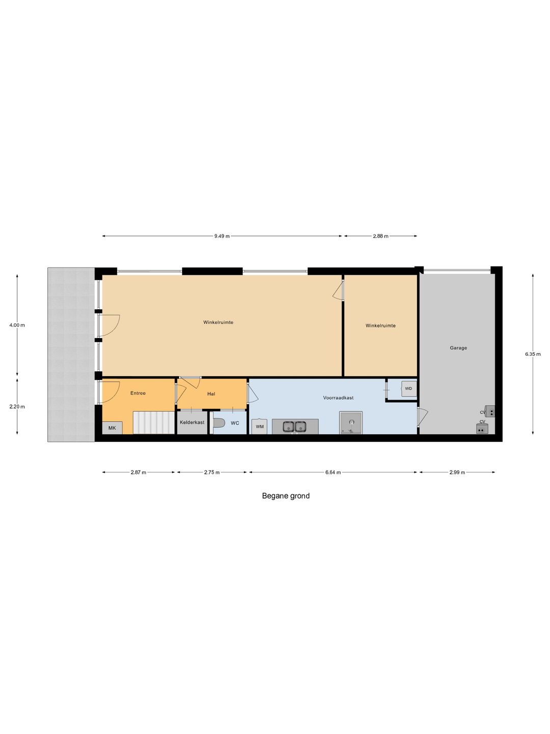 De entree is voorzien van een meterkast en trapopgang met traplift naar de bovenwoning. Aan de voorzijde bevindt zich de winkelruimte, momenteel ingericht voor het exploiteren van een kapsalon. Aan de achterzijde is een aparte ruimte ingericht als schoonheidssalon. Daarnaast huurt de huurder de kelderkast en het toilet, bereikbaar via de hal. Via diezelfde hal heeft de bewoner toegang tot de inpandige garage, die te bereiken is via een voorraadkast met pantry, douchecabine en opstelplaats voor wasmachine en droger.