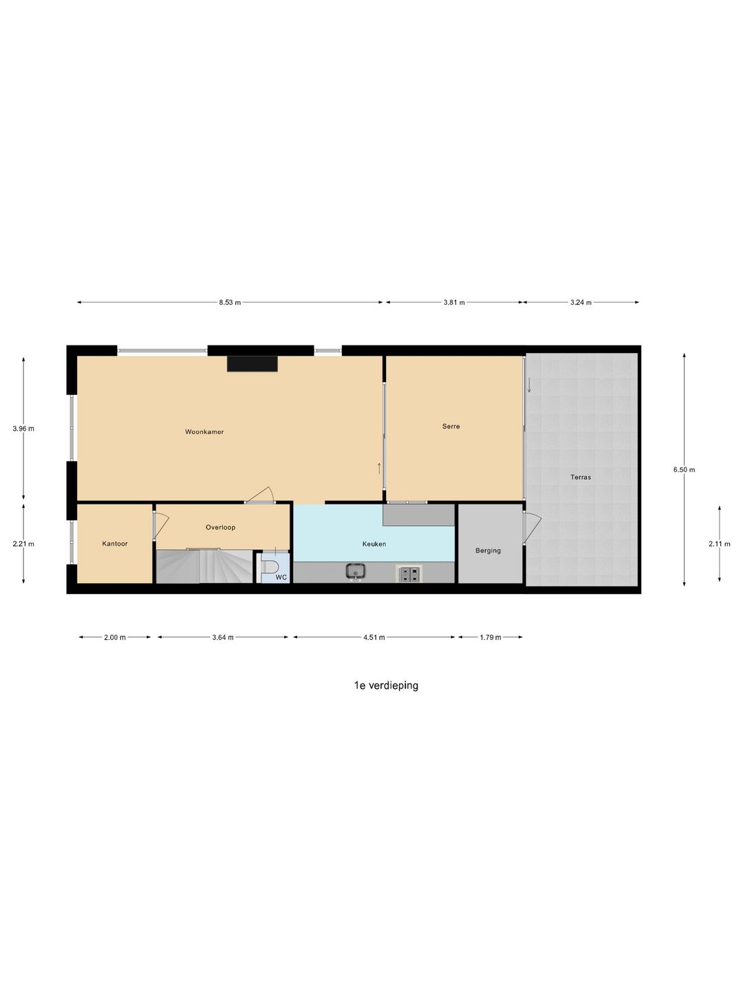 De woning, grotendeels verdeeld over de eerste en tweede verdieping, heeft een gebruiksoppervlakte van 83 m². Daarnaast beschikt u over een inpandige garage van circa 19 m², een royale serre van bijna 16 m² en een dakterras met berging van ruim 3,5 m². Het terras zelf meet circa 21 m² en vormt een heerlijke buitenruimte midden in het dorp.