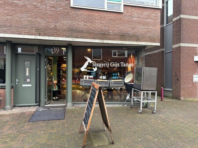 Indeling, entree slagerij ,werkgedeelte, doorloop naar koelcel/dagverblijf en toilet.