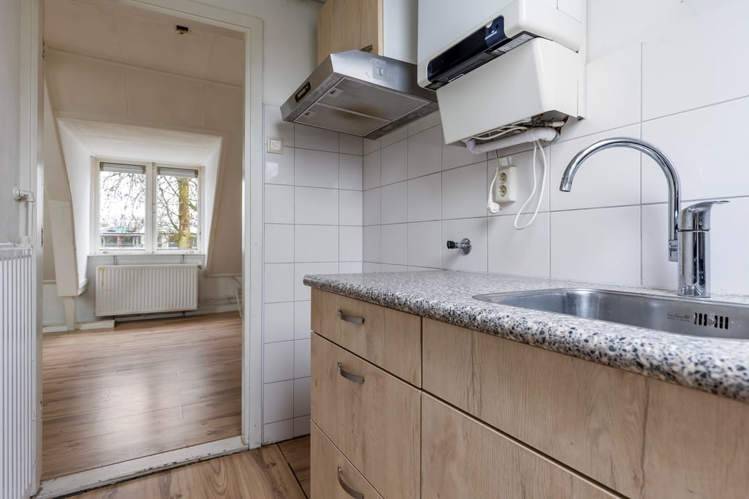 Compacte zelfstandige wooneenheid onder de kap met woon-/slaapkamer, keuken en badkamer.