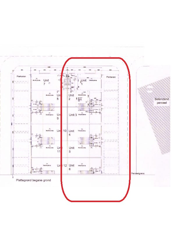 Het betreft 3 units van circa 100 m² BVO op de begane grond en circa 100 m² BVO op de verdieping