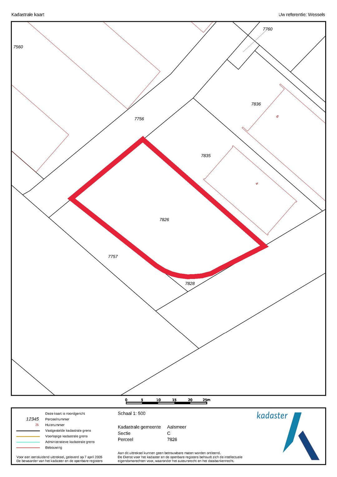 Gemeente Aalsmeer, sectie C, perceelnummer 7826, oppervlakte 1.270 m² (volledig eigendom).