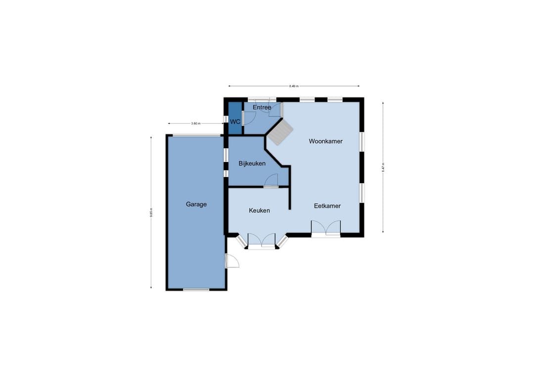 In de huidige situatie betreft het een perceel van ca. 1.650 m2 met daarop een bedrijfswoning, gebouwd in 1998 en uitgevoerd in houtskeletbouw. De bedrijfswoning heeft een gebruiksoppervlakte van circa 150 m², verdeeld over drie bouwlagen. De begane grond omvat een entree aan de voorzijde met toiletvoorziening. Vanuit de hal is toegang tot de woonkeuken met kookeiland, de bijkeuken en de ruime tuin met overkapping. Op de eerste en tweede verdieping bevinden zich meerdere slaapkamers en een badkamer.