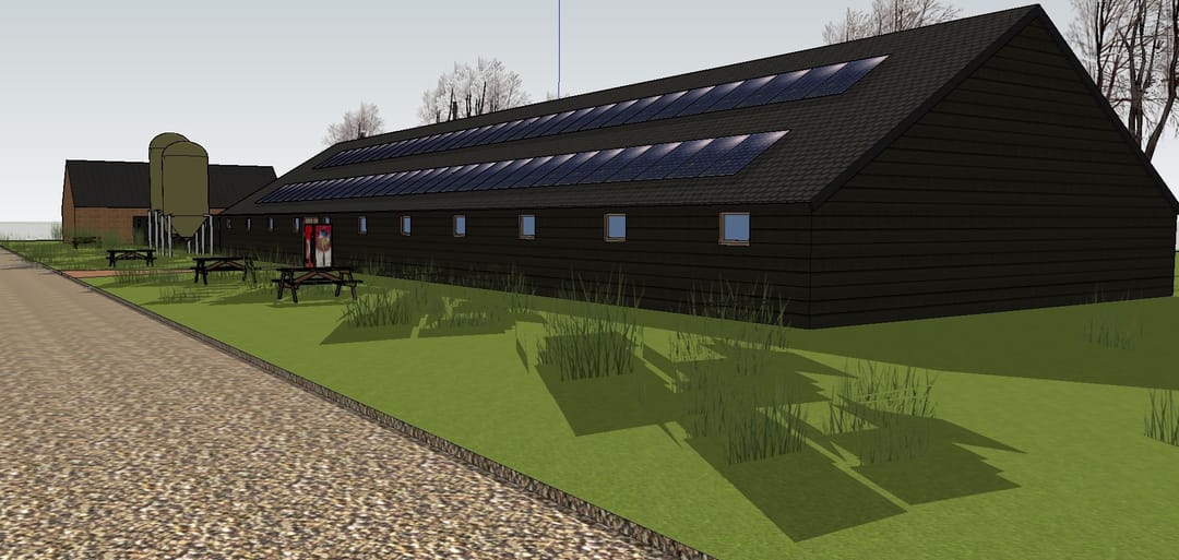Verkoper is in het verleden bezig geweest met plannen voor het neerzetten van een nieuwe locatie, wanneer er enkel scharrelvarkens zouden worden gehouden. Twee schetsen hiervan zijn toegevoegd bij de foto’s.