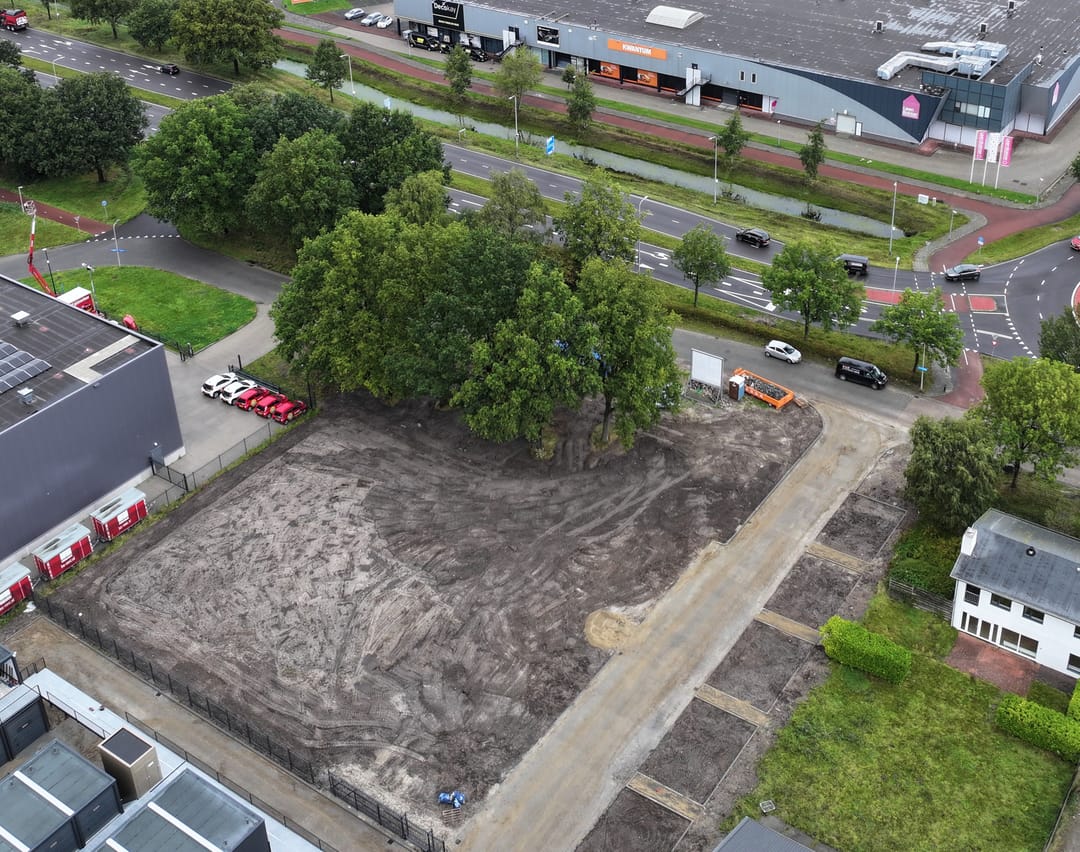 De bouwkavel is op een toplocatie gelegen, goed zichtbaar. Korte afstand van centrum. Nabij uitvalswegen. Omringd door veel bouw gerelateerde bedrijven.