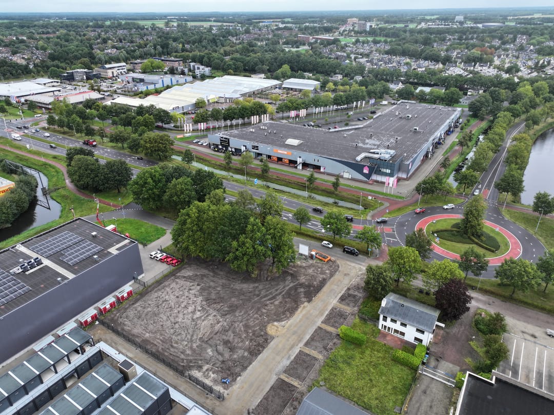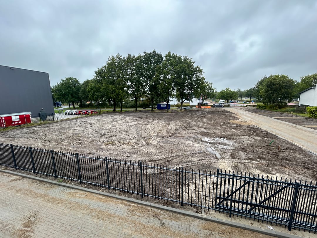Achter de bouwkavel bevindt zich het nieuw gerealiseerde garageplaza Assen.