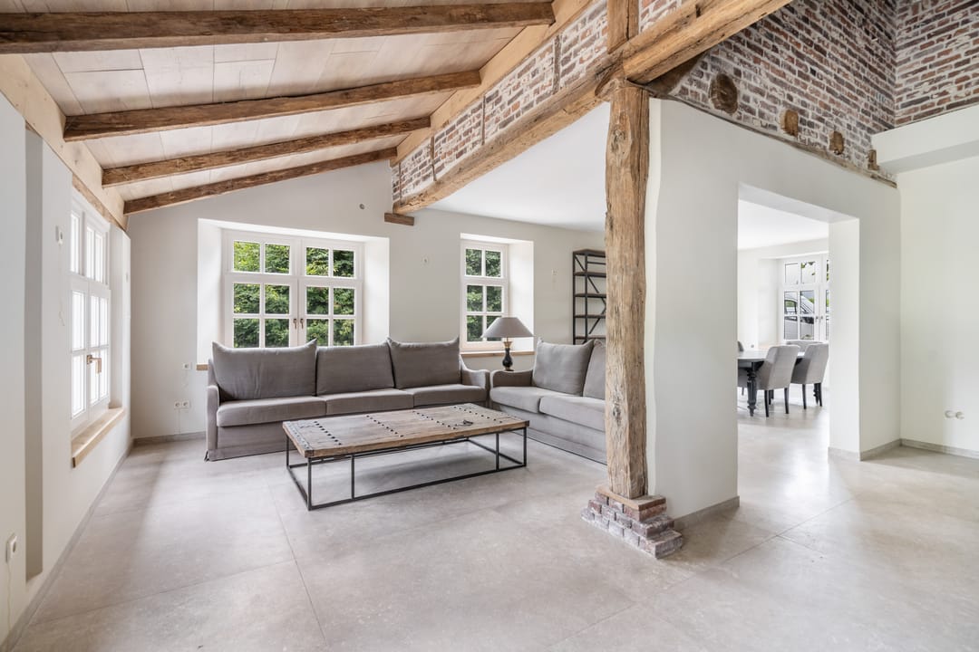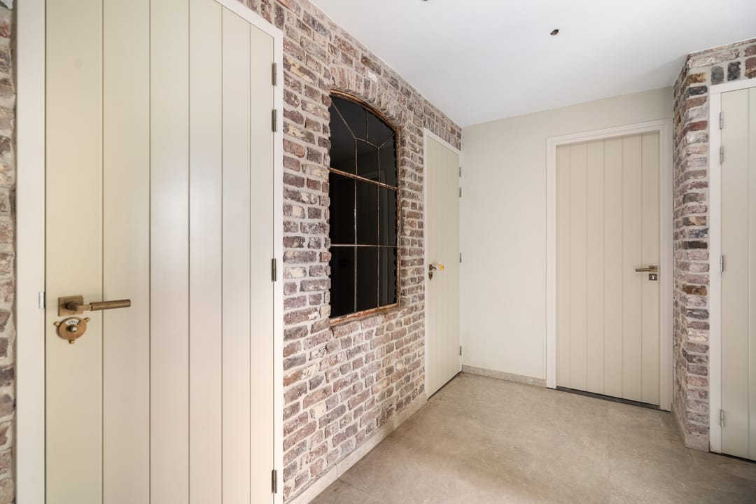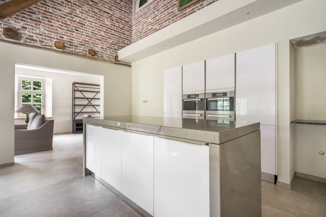 Het rechter gedeelte van de boerderij vormt het woonhart en biedt een royale entree met toegang tot de luxe keuken en de lichte woonkamer. De keuken is uitgerust met hoogwaardige Miele-apparatuur en beschikt over een bijzonder kookeiland dat met één handbeweging kan worden verplaatst en transformeert tot bar. De keuken is nagenoeg ongebruikt en vormt een echte blikvanger. Zowel de keuken als de woonkamer zijn voorzien van vloerverwarming en genieten van een prettige lichtinval. Op de verdieping bevindt zich momenteel een slaapkamer met eiken vloer en voorbereidingen voor een badkamer. De verdieping biedt daarnaast de mogelijkheid om, indien gewenst, twee extra slaapkamers te realiseren, waarmee het woonprogramma eenvoudig kan worden uitgebreid en aangepast aan de behoeften van een gezin of gecombineerd woon-werkgebruik. Daarnaast is dit gedeelte constructief voorbereid op het realiseren van een eigen trap of lift, wat bijdraagt aan toekomstbestendig gebruik.