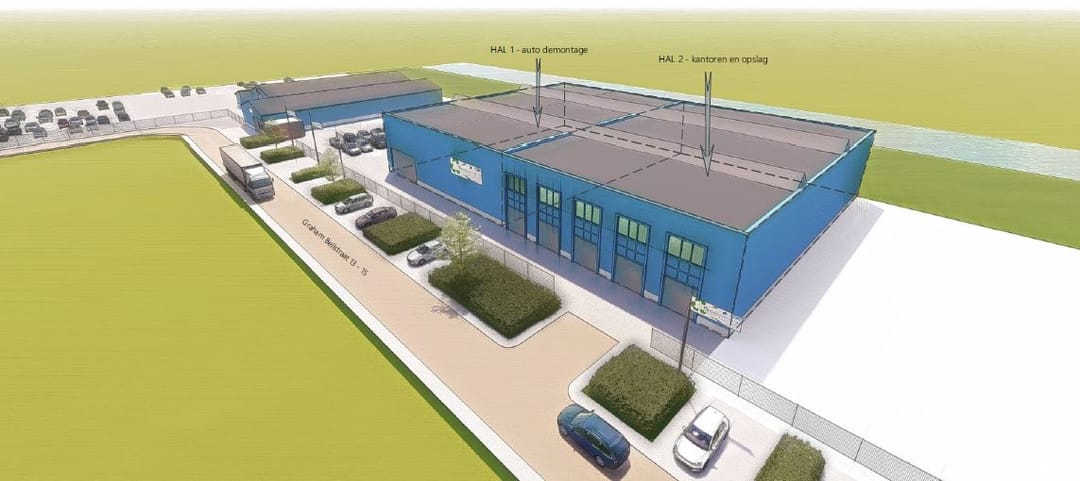 - Totale oppervlakte nieuwe bedrijfshallen: circa 2.160 m², bestaande uit drie nieuwe bedrijfshallen (2 x 600 m² en 1 x 200 m²)