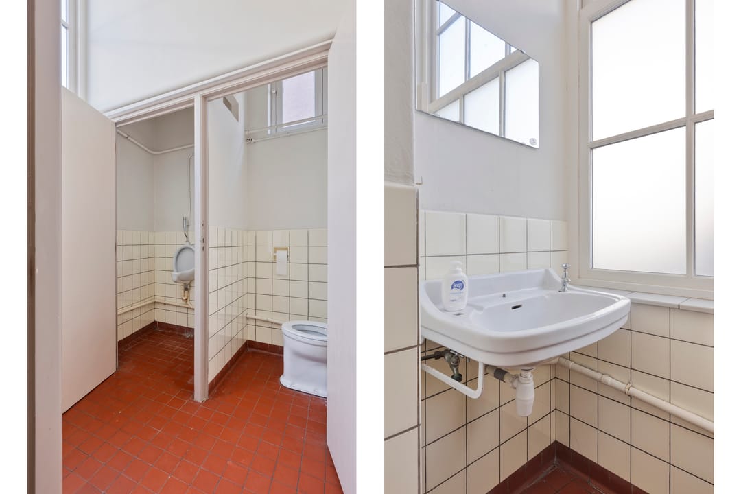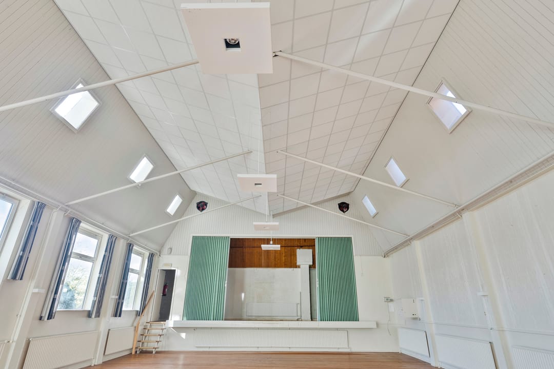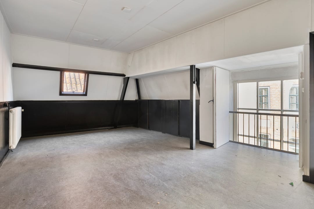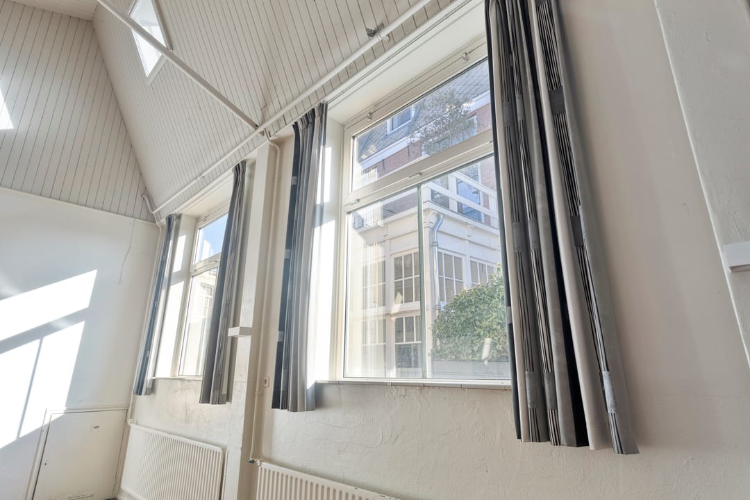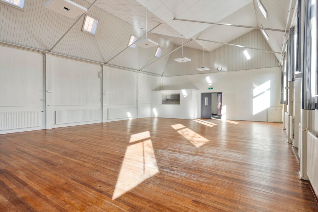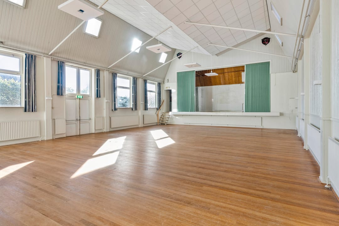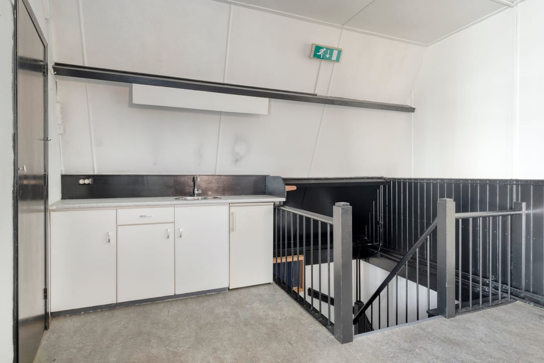 De zaal vormt het hart van het pand en kenmerkt zich door een prettige hoeveelheid daglicht, wat zorgt voor een open en aangename sfeer. De ruimte is voorzien van een extra toegangsdeur en beschikt over een ruim podium, waardoor de zaal uitstekend geschikt is voor bijeenkomsten, presentaties, optredens of andere groepsactiviteiten.