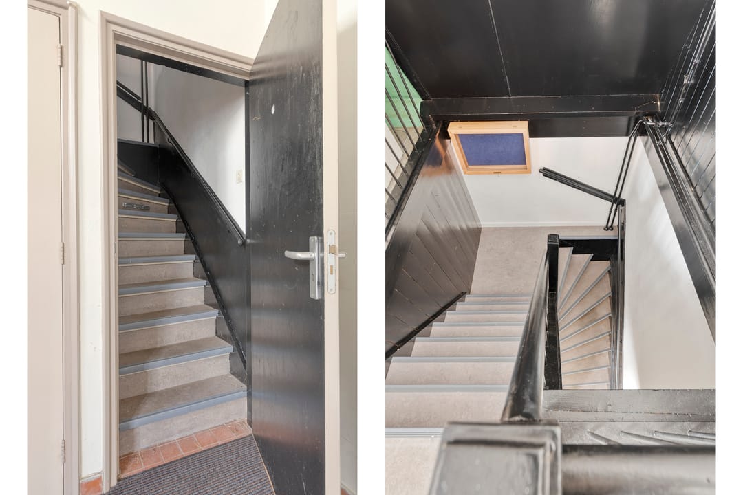 Vanuit de hal leidt een trap naar de verdieping alwaar een extra ruimte aan de voorzijde van het pand. Deze ruimte beschikt over een eigen keukenblokje met vaatwasser en biedt eveneens volop mogelijkheden voor verschillende gebruiksvormen. Daarnaast is hier extra bergruimte aanwezig.