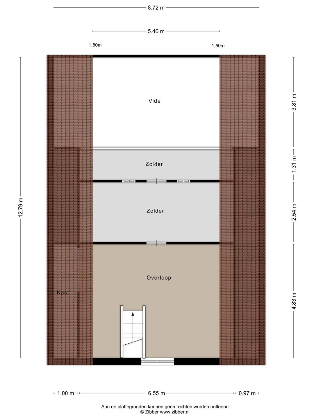 1e verdieping: overloop en voornamelijk opslagruimte.