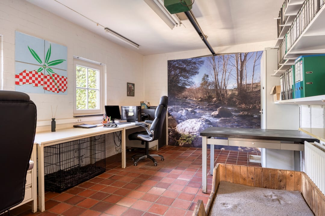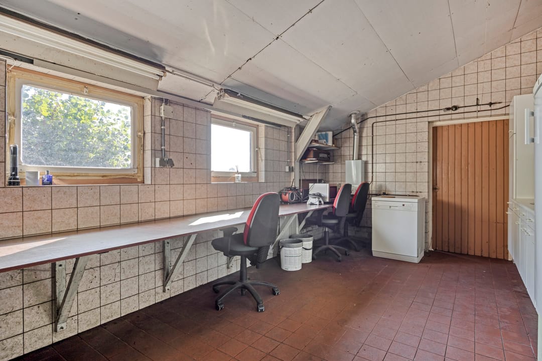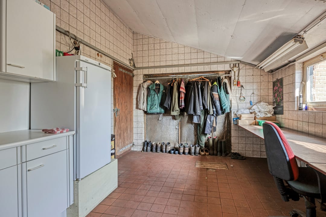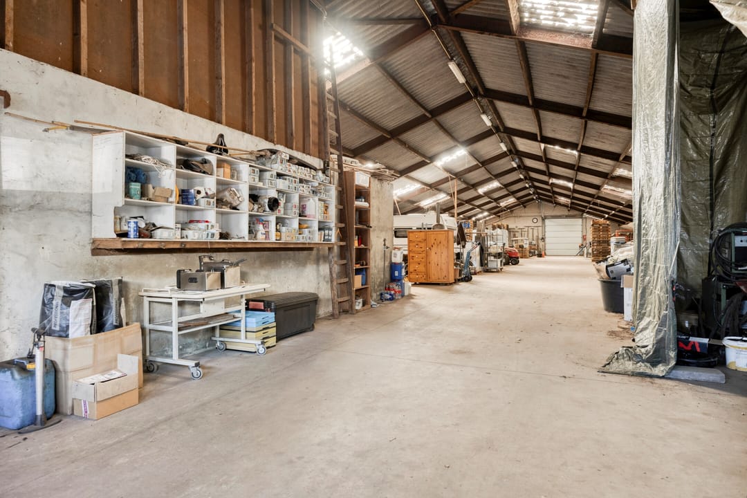 De vloer van de veldschuur en werkplaats zijn verhard met betonklinkers.