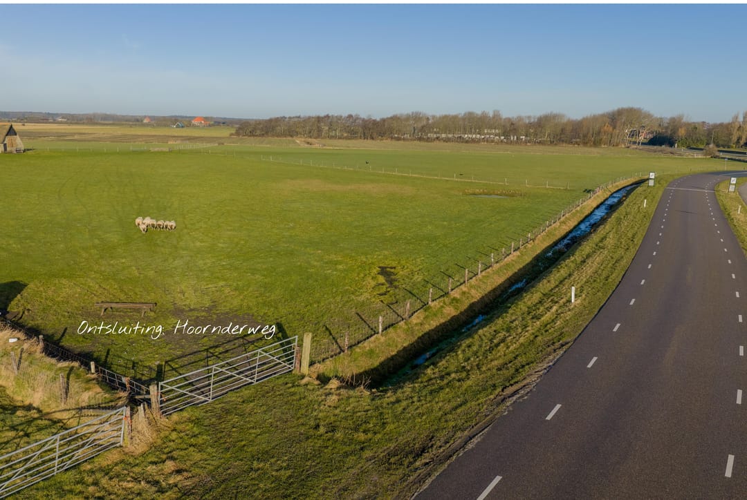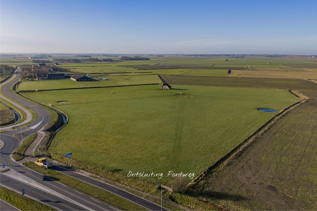 De kavel is ontsloten aan zowel de Hoornderweg als de Pontweg, waardoor het perceel goed bereikbaar is. De ligging in het open agrarische gebied zorgt voor weidse uitzichten over het Texelse landschap met graslanden, akkers en karakteristieke agrarische bebouwing.