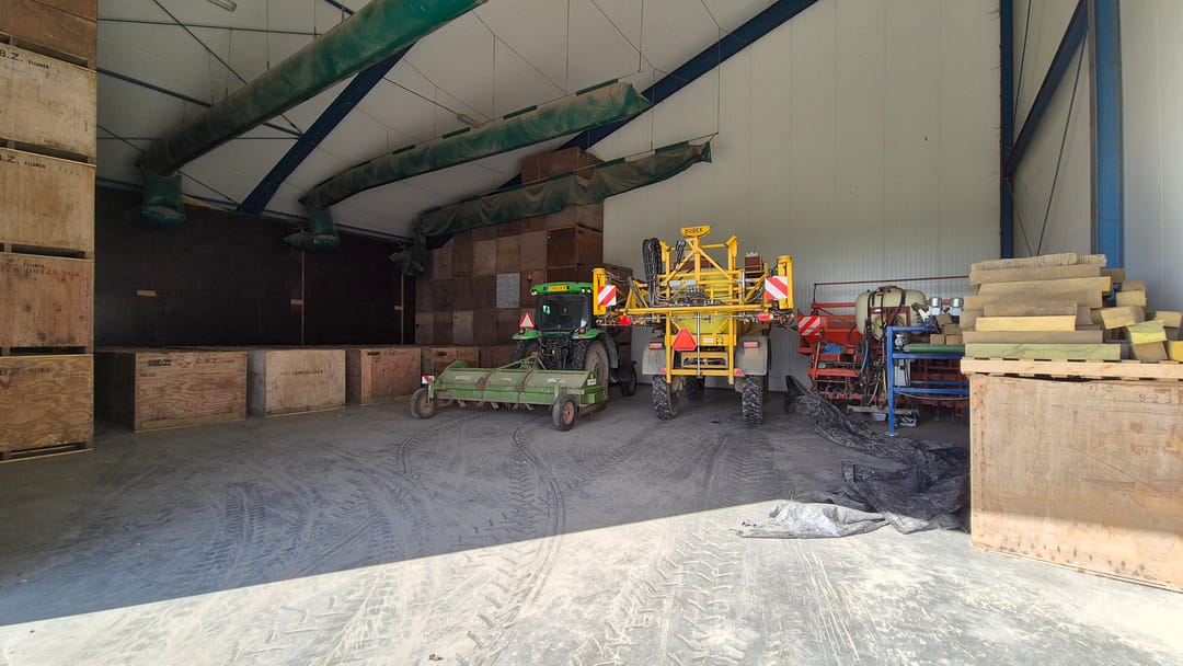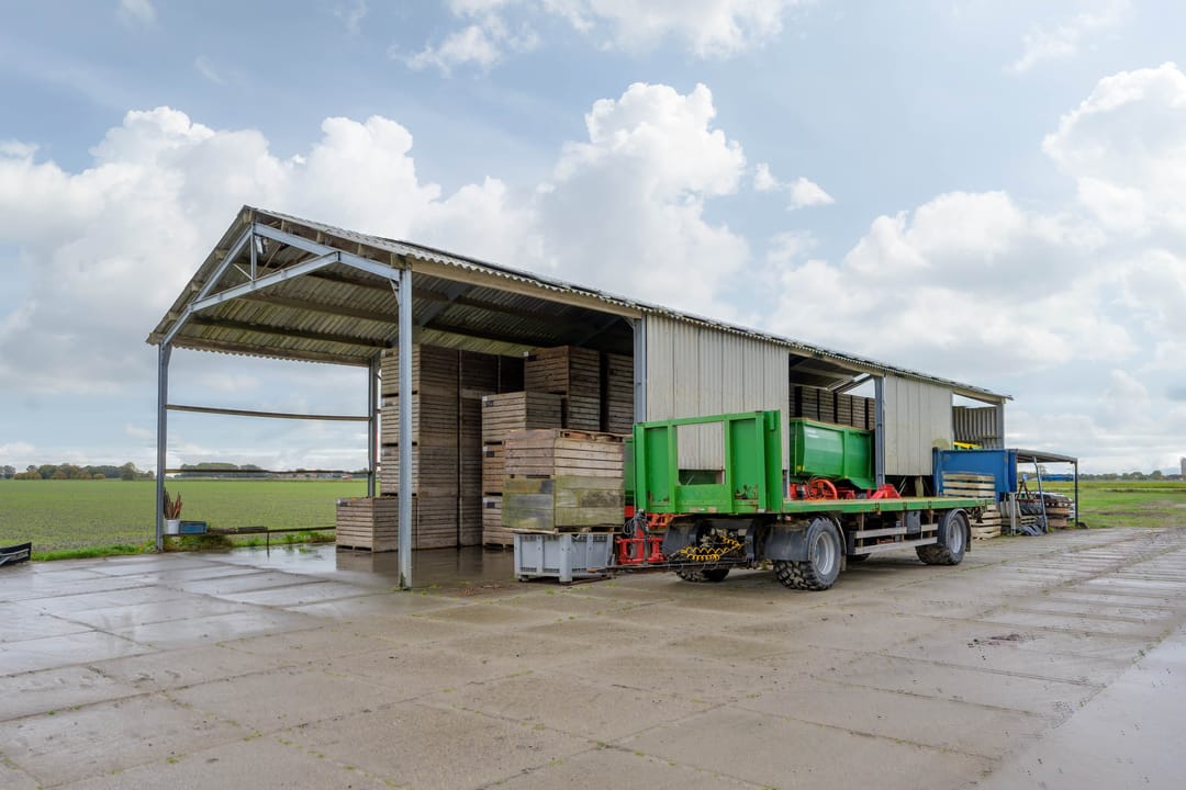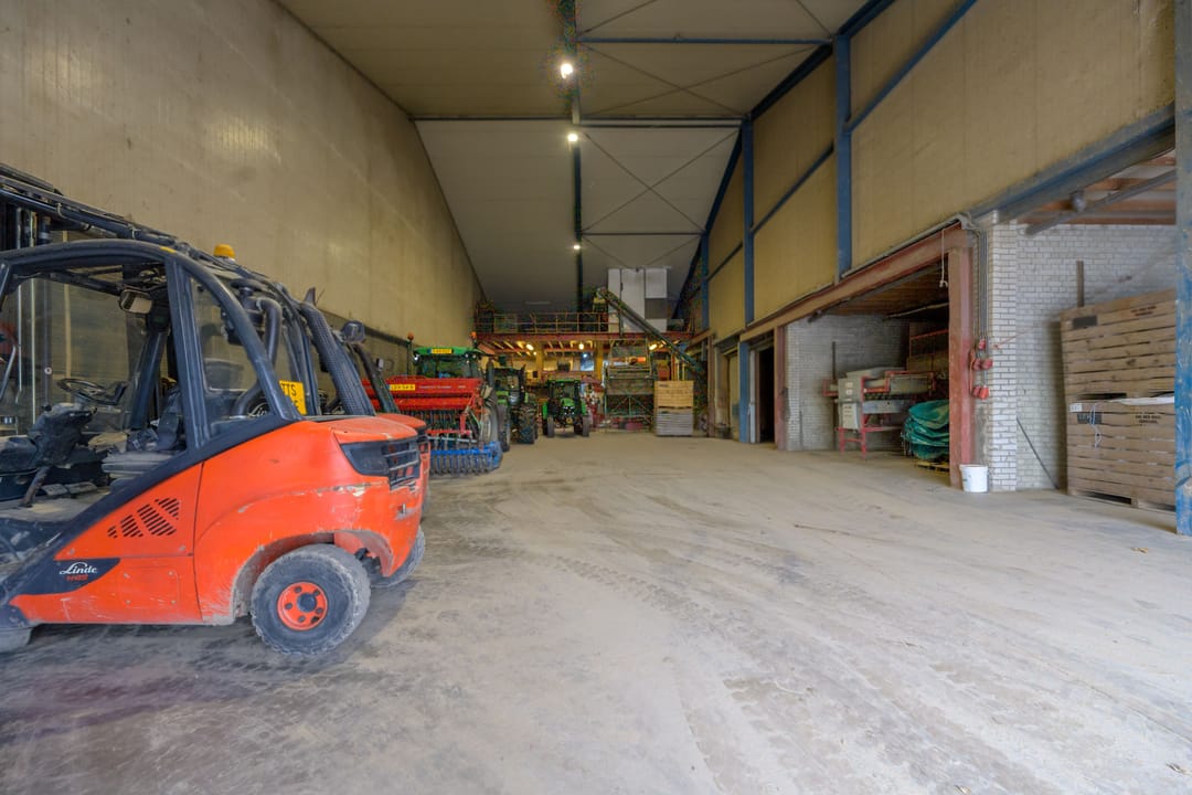 Het schuurgedeelte van de stelpboerderij is ingericht deels voor aardappelopslag (ca. 1.000 ton) en deels met aardappel-sorteerinrichting.