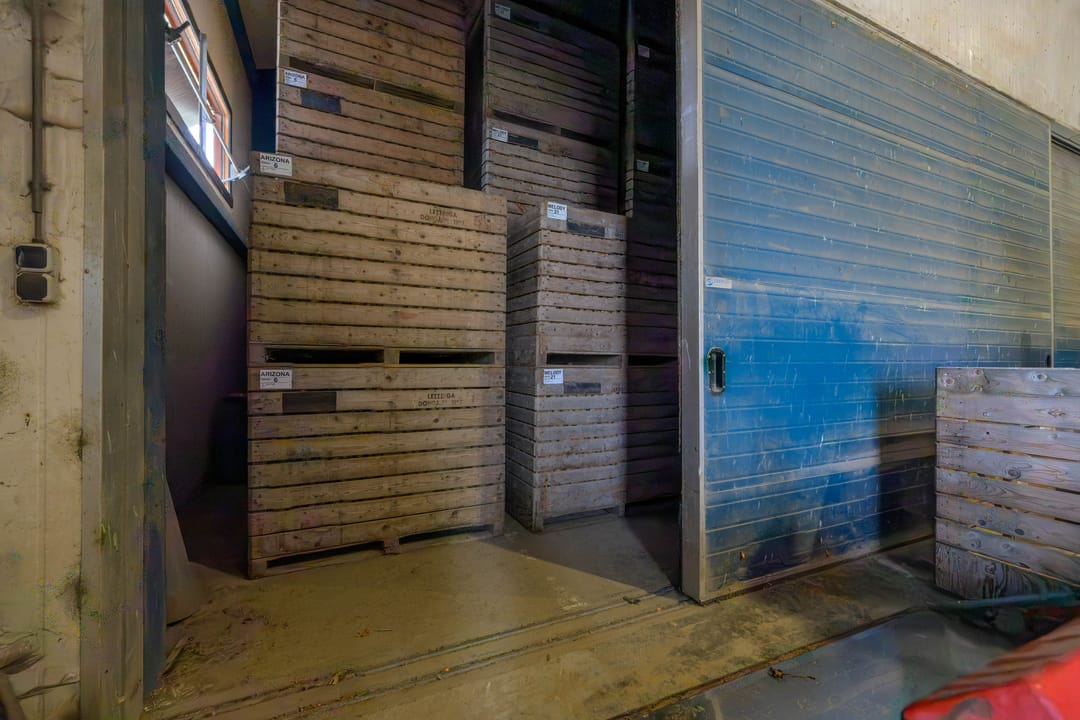 Het achterste gedeelte van de loods is ingericht voor kistenbewaring voor ca. 380 kisten, met gefaseerde koeling.