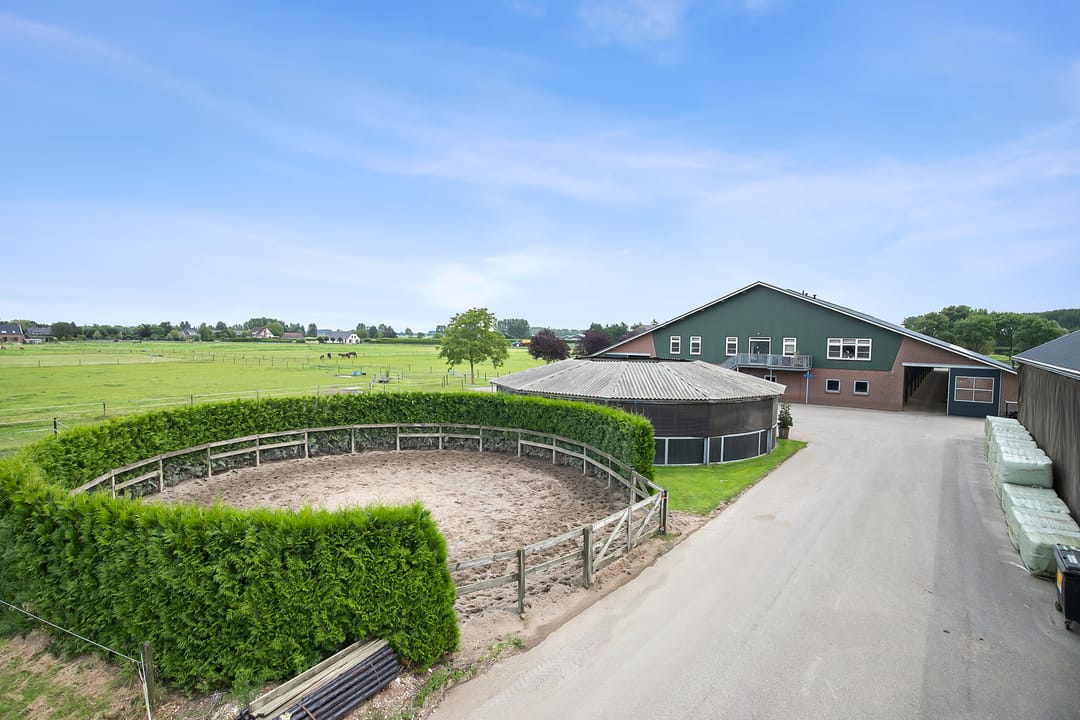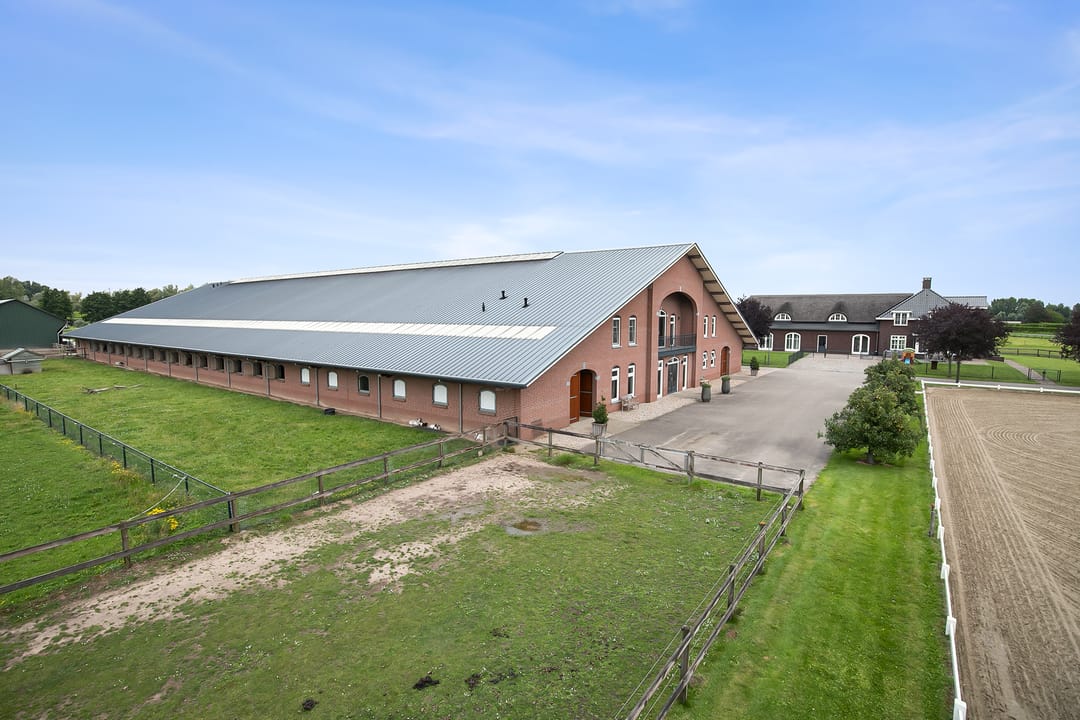 De goed onderhouden hippische accommodatie bestaat uit een vrijstaande rijhal met een binnenpiste (ca. 21x61 mtr.), een paardenstal met een ontvangstgedeelte en in totaal 39 paardenboxen verdeeld over 2 gangen en een vrijstaande veldschuur. Het erf is verder ingericht met een buitenpiste, overdekte stapmolen, een longeercirkel, diverse paddocks en een mestvaalt. Er is voldoende parkeergelegenheid aanwezig voor het stallen van o.a. trailers en vrachtwagens.