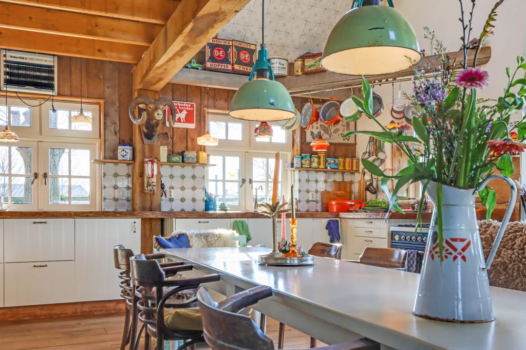De inrichting en afwerking is een smaakvolle, kleurrijke combinatie van nostalgie en hedendaags comfort. Met name de eikenhouten gebintenconstructie (gemaakt van eikenbomen welke op het eigen erf stonden) in combinatie met de 80 tot 100 jaar oude binnendeuren, de houten keuken, het tegelwerk en sanitair maken het tot een warm en smaakvol geheel.