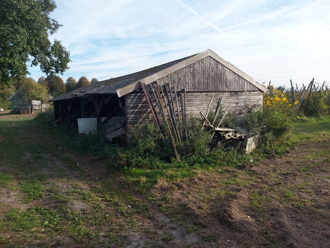 De veldschuren betreffen twee eenvoudige houten bouwwerken in matige staat, respectievelijk groot circa 72 m² (6 m x 12 m) en circa 28 m² (7 m x 4 m). De daken bestaan uit asbesthoudende golfplaten. De schuren zijn niet aangesloten op elektriciteit.