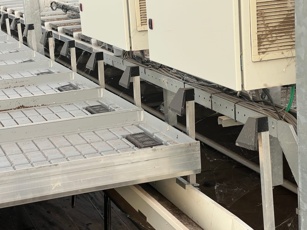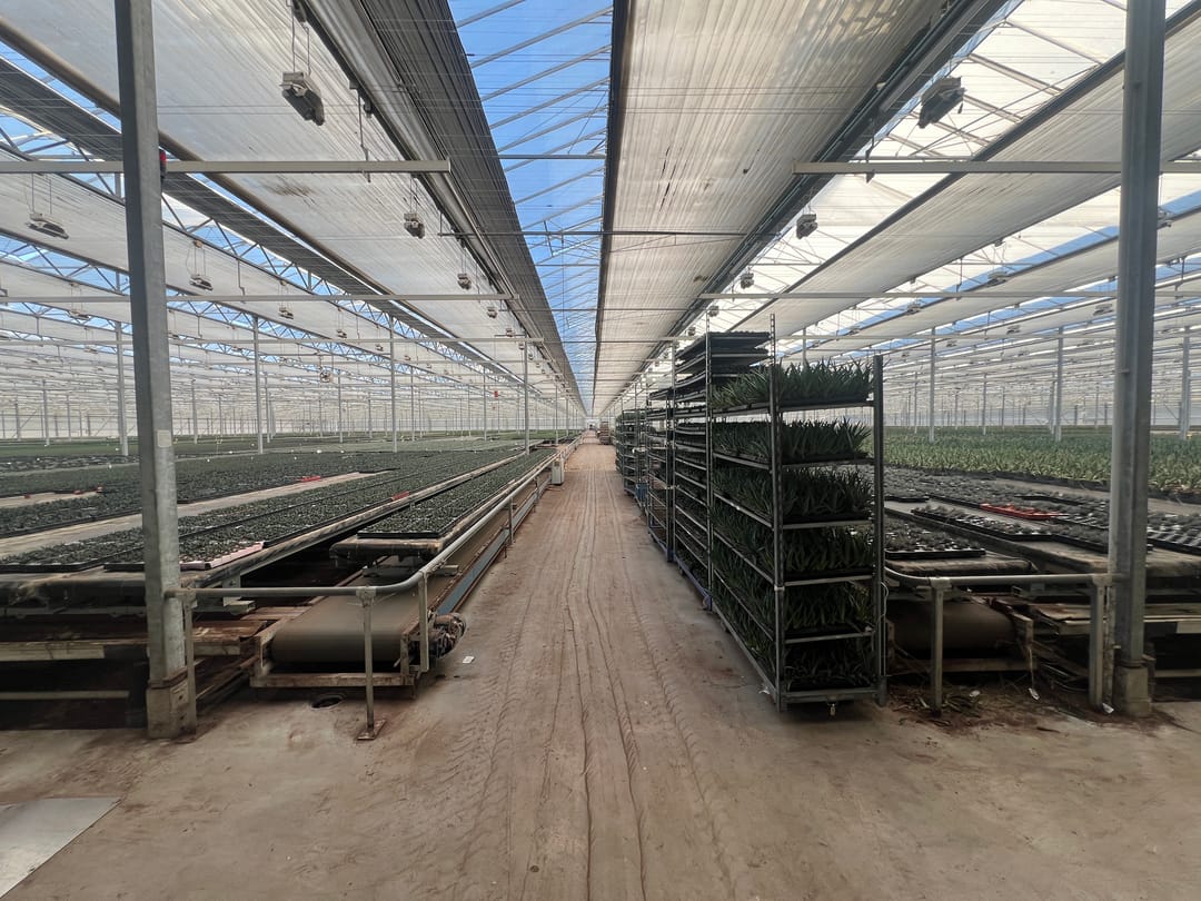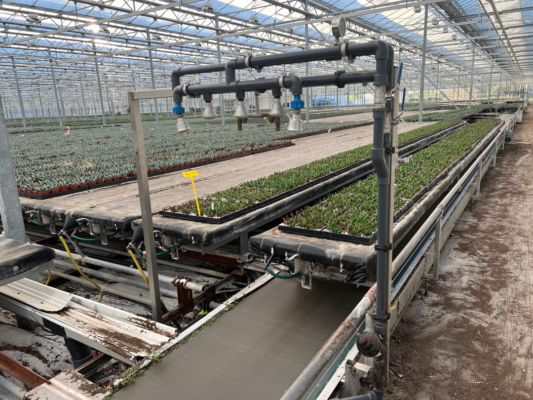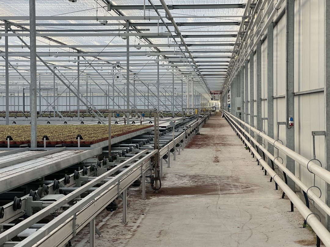 o Transportsysteem: automatisch, met 1.960 aluminium mobiele teelttafels van 13,50 x 0,60 m