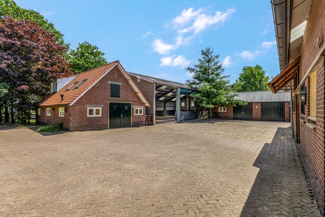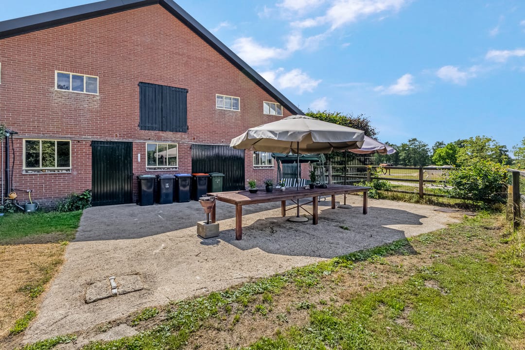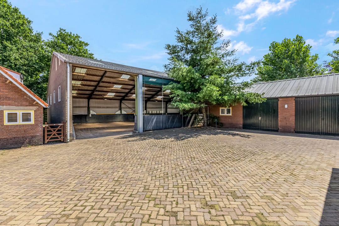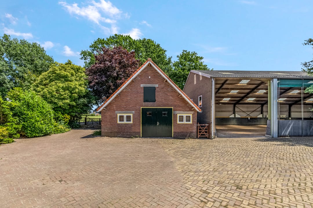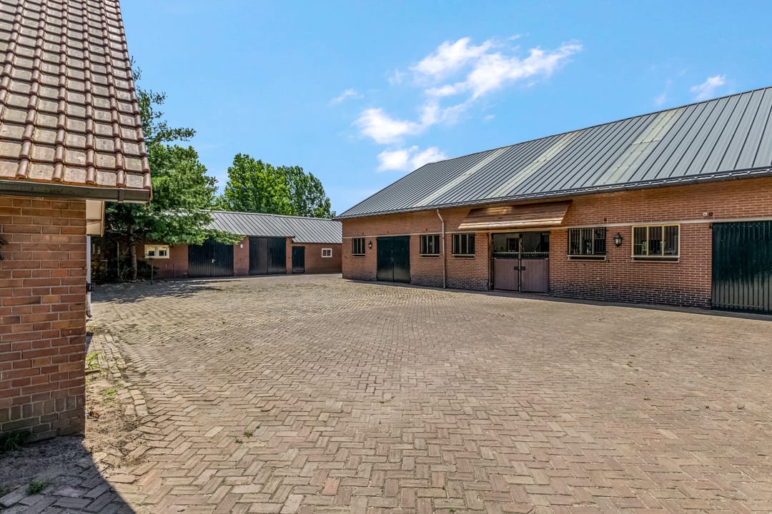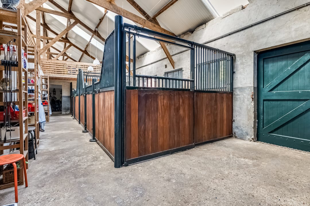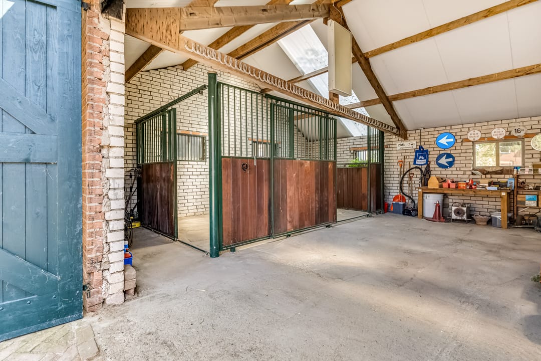 Grote stal/schuur, via een hal/bijkeuken gekoppeld aan het woonhuis. De schuur is opgetrokken in steen en gedekt met geïsoleerde sandwichpanelen. In de schuur zijn een drietal zeer grote design paardenboxen van Corton, type Rembrandt, aangebracht. Ook is er een wasplaats met een douche en warm water en een aparte zadelkamer. Het overige gedeelte van deze schuur is in gebruik als berging/opslag en heeft een grote hooizolder met stenen vloer. Er is een eigen waterbron met hydrofoorinstallatie aanwezig.