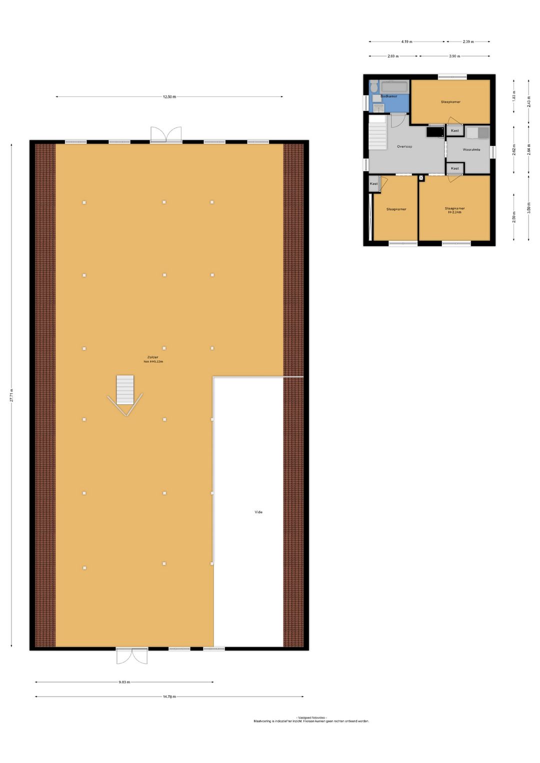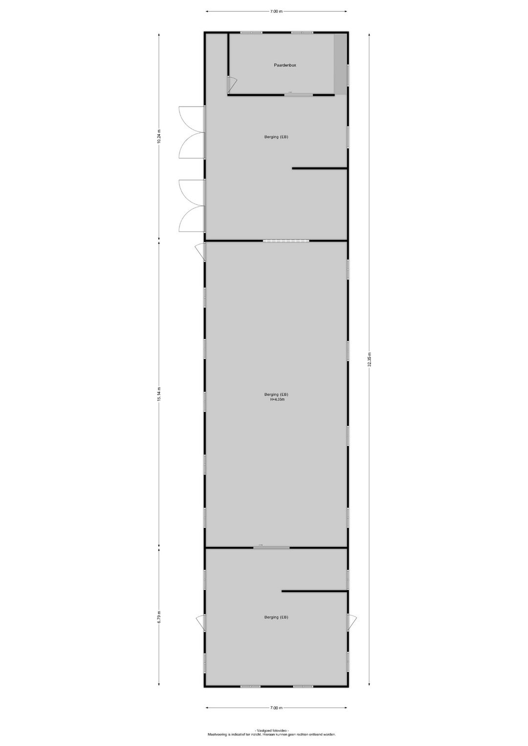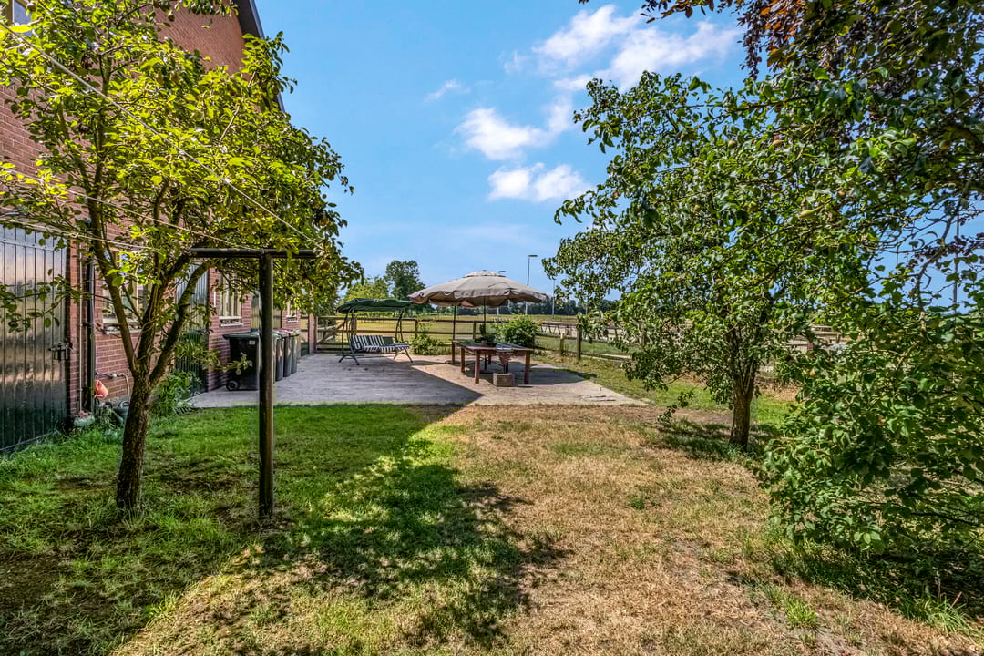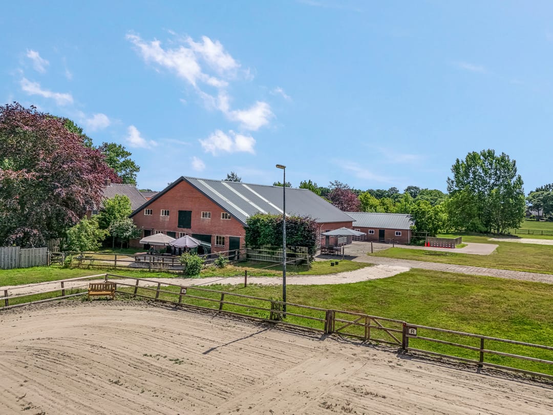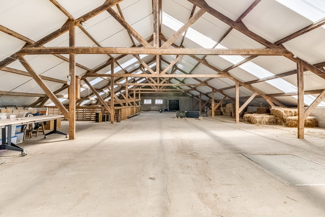 Grote stal/schuur, via een hal/bijkeuken gekoppeld aan het woonhuis. De schuur is opgetrokken in steen en gedekt met geïsoleerde sandwichpanelen. In de schuur zijn een drietal zeer grote design paardenboxen van Corton, type Rembrandt, aangebracht. Ook is er een wasplaats met een douche en warm water en een aparte zadelkamer. Het overige gedeelte van deze schuur is in gebruik als berging/opslag en heeft een grote hooizolder met stenen vloer. Er is een eigen waterbron met hydrofoorinstallatie aanwezig.