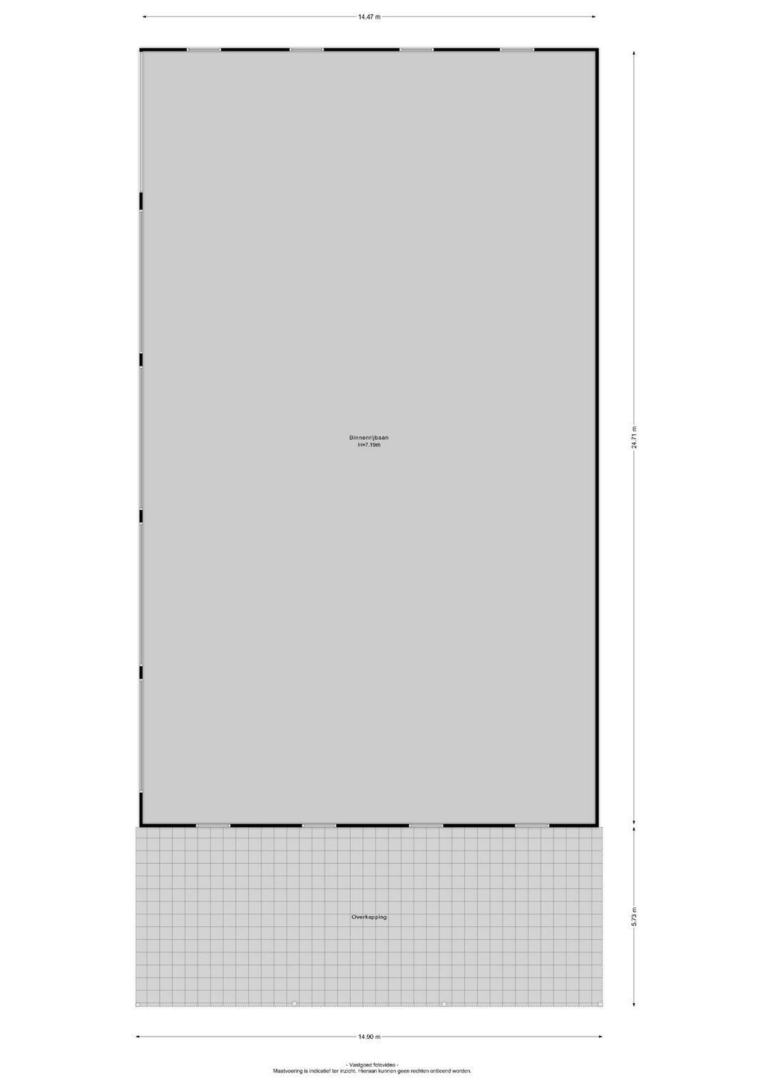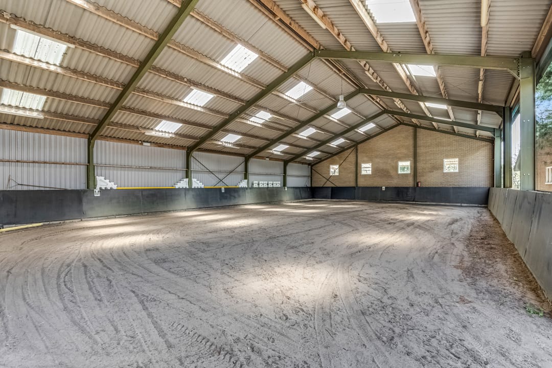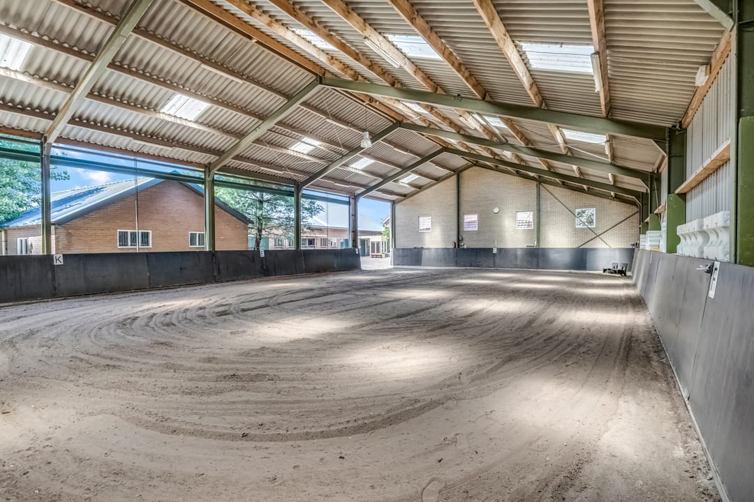 Rijbaan binnen, afmeting 15 x 25 meter, opgetrokken in zowel steen als damwandplaten en gedekt met asbestvrije golf- en lichtplaten. De opstal is gerealiseerd in 2007 en is gedeeltelijk open (aan één kant). Dit gedeelte is optioneel, met een elektrisch bedienbaar windbreekgaas, ook volledig af te sluiten, waarbij de ingang (ca. 5 meter breed) open blijft. De rijbaan beschikt over een leemzand-/houtsnipperbodem en losse sproei mogelijkheid.