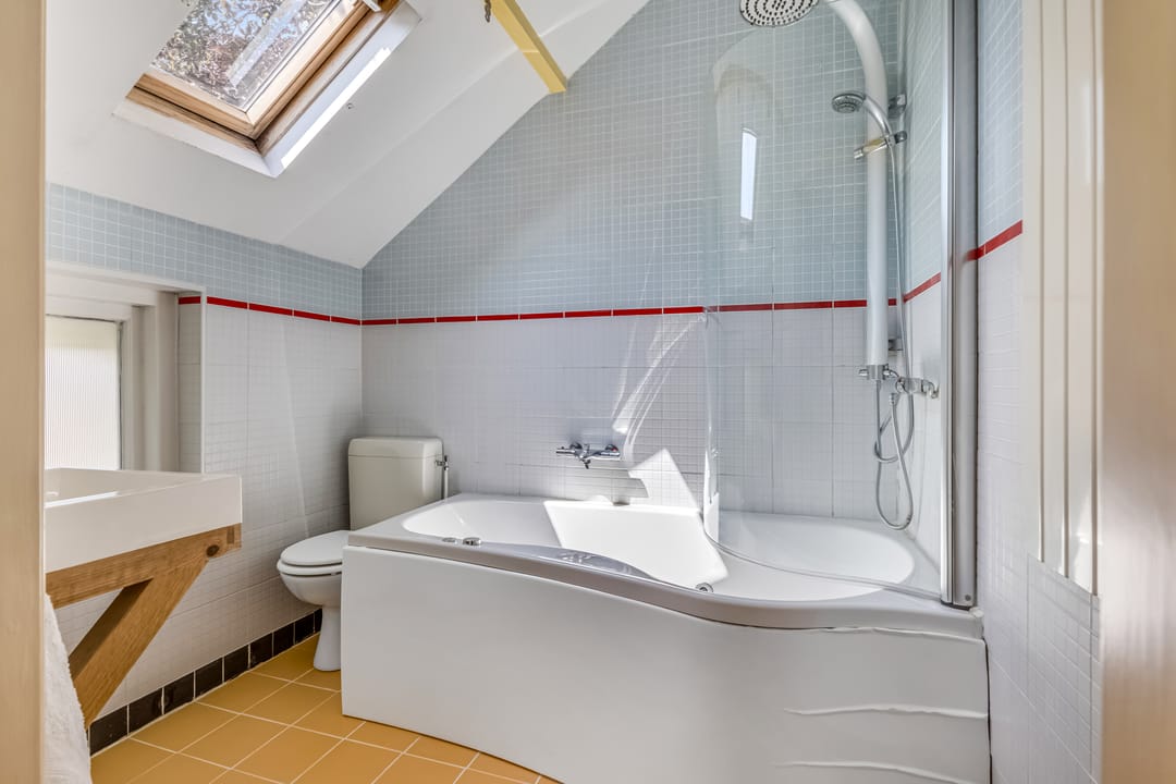 Op de eerste verdieping bevinden zich een drietal ruime slaapkamers en een moderne badkamer met whirlpool. Eén van de kamers heeft een airco-unit. Ook is er een ruimte met opstelling voor wasmachine en droger.