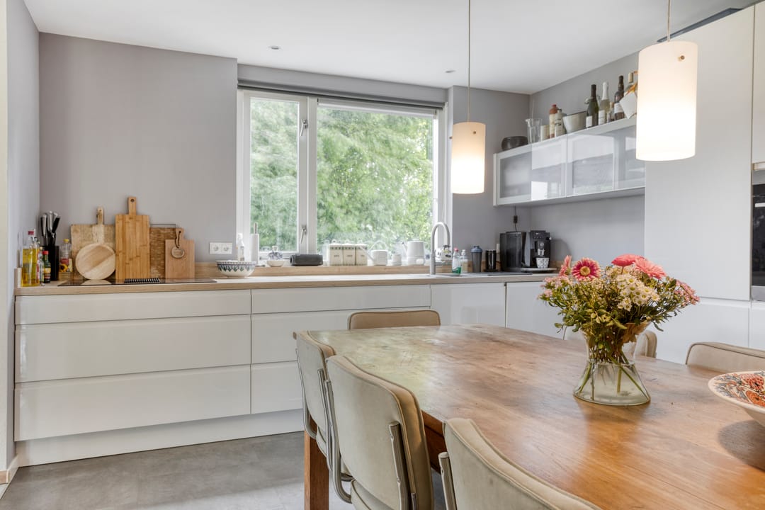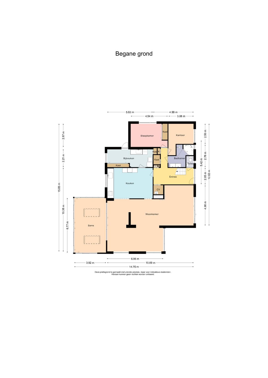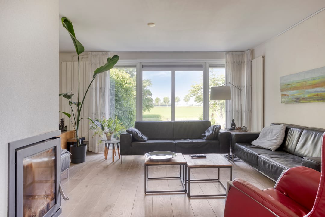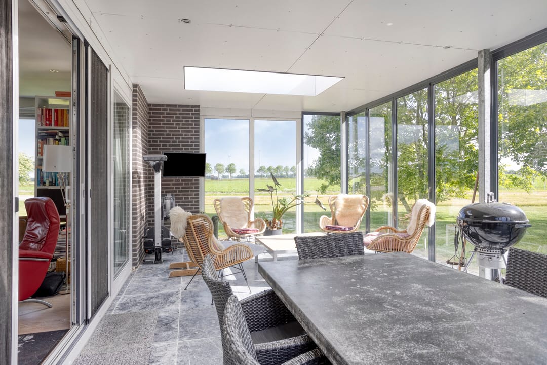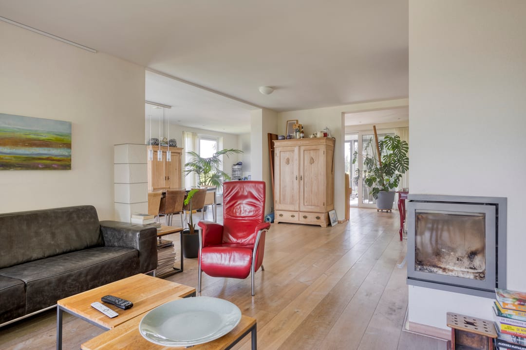 woonkamer met houtkachel, eetkamer, serre, keuken, bijkeuken, twee slaapkamers, de badkamer en aparte toilet.