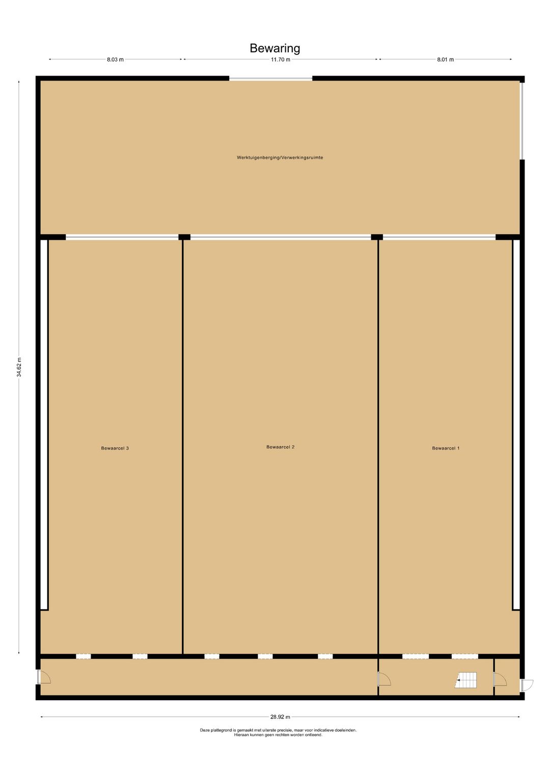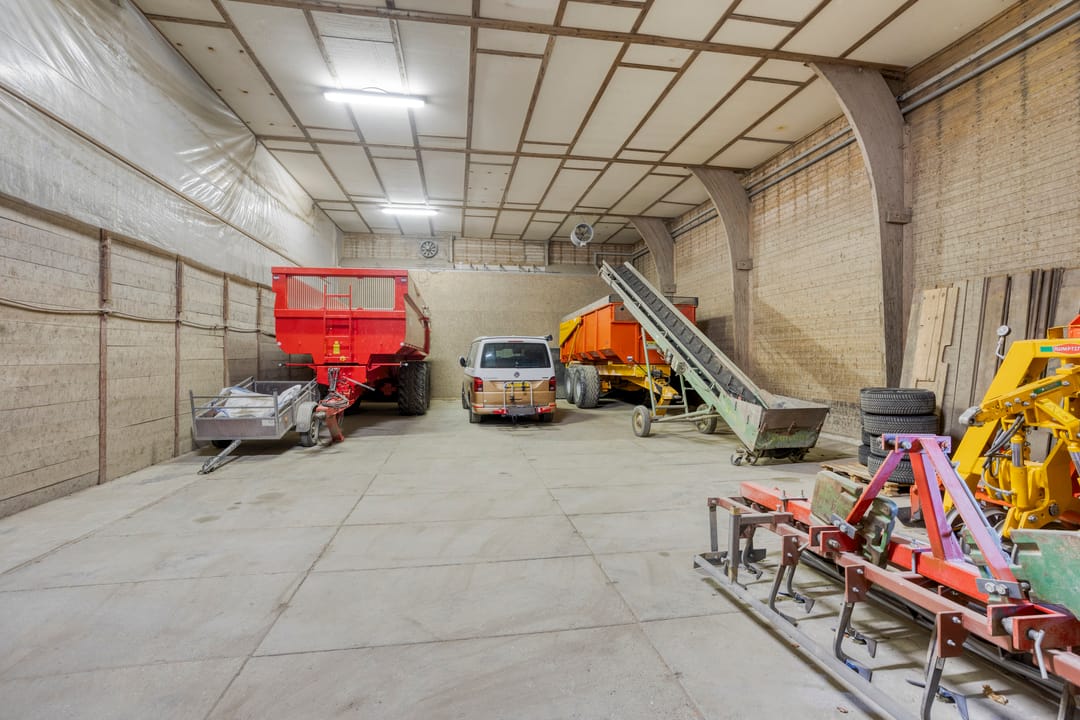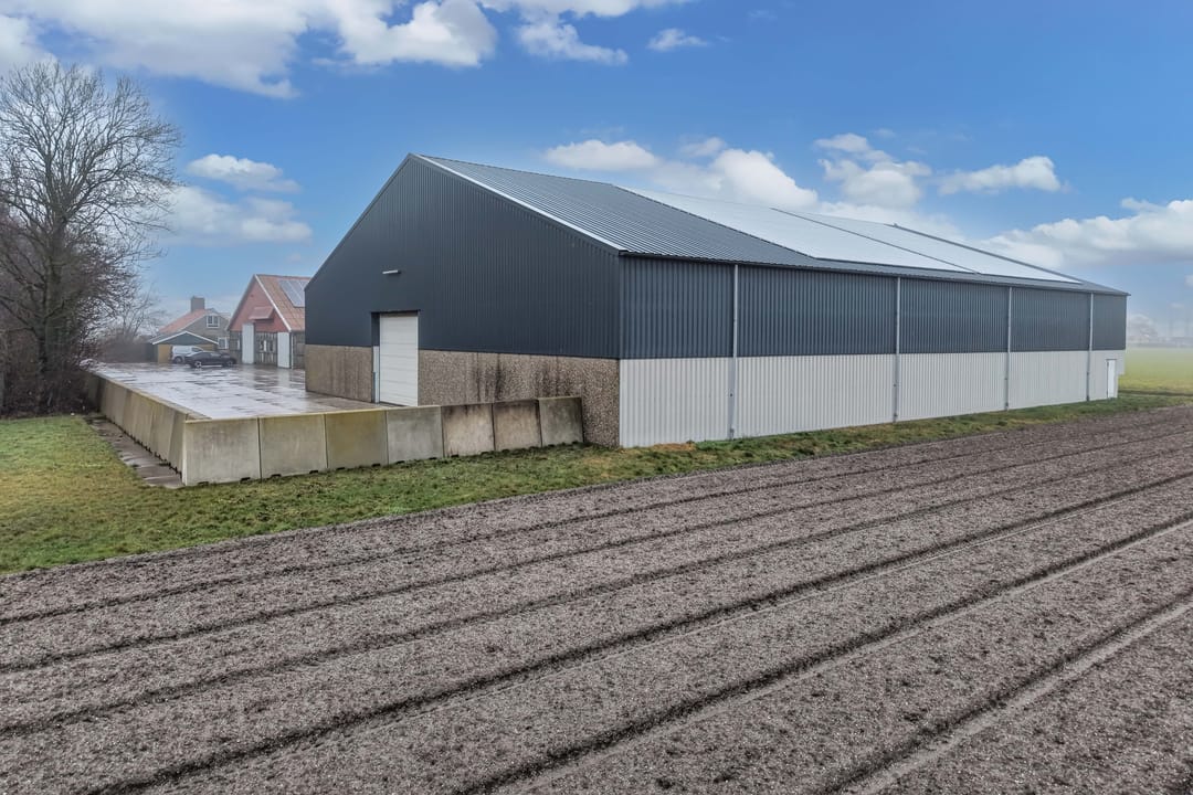 Moderne landbouwschuur uit 2009 ingericht voor het bewaren van landbouwproducten. De schuur is volledig geïsoleerd d.m.v. sandwichpanelen, stalen spanten met houten gordingen, volledig onderheide en gestorte betonnen vloer. Voorzien van modern en volledig automatisch bewaringssysteem met de mogelijkheid om losgestort product (aardappelen & uien) te bewaren in 3 aparte cellen van 700 ton (1x) en 400 ton (2x). Schuur is ruim opgezet en geeft diverse mogelijkheden om te worden gebruikt op andere manieren. Afmeting circa 28,92 x 34,62 meter. Op het dak liggen 161 zonnepanelen.