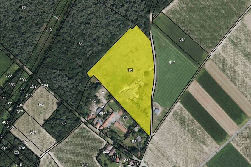 Het perceel is kadastraal bekend als gemeente Echt, sectie Y, nummer 189, ter grootte van circa 3.44.00 ha (34.400 m²).