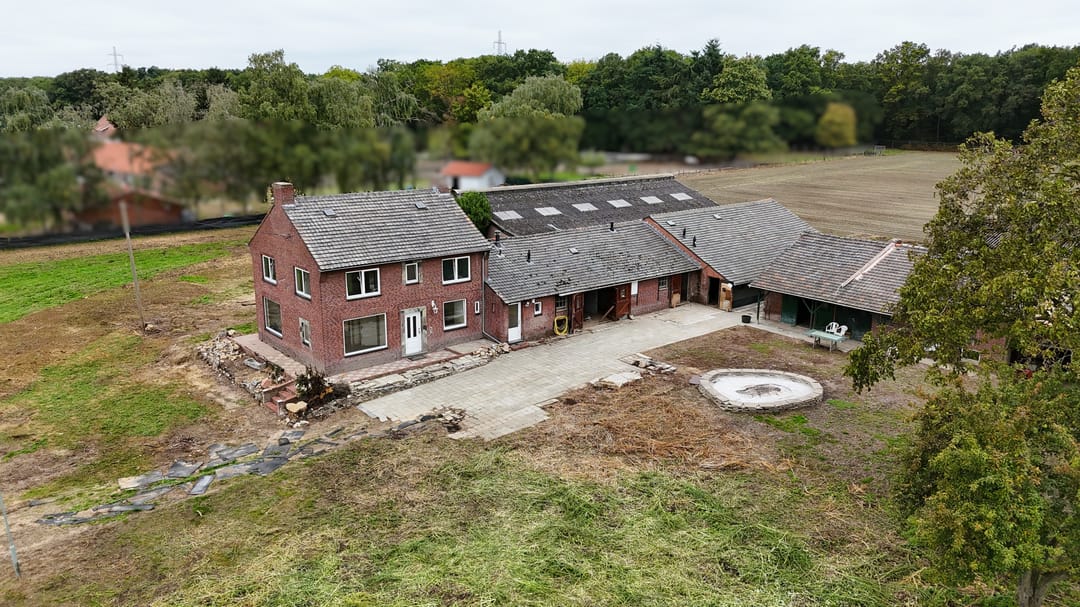Aan de voorzijde van het perceel is er vrij uitzicht over de uitgestrekte landerijen, terwijl de achterzijde grenst aan een bosperceel. Het object is bereikbaar via een onverharde oprit. Het erf zelf is voorzien van een verharding met betontegels en gestort beton.
