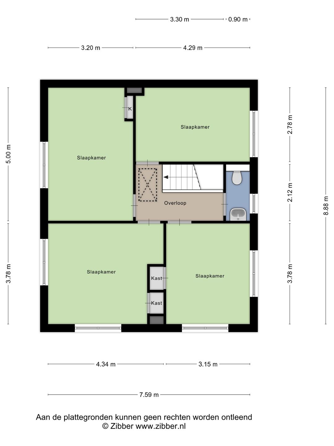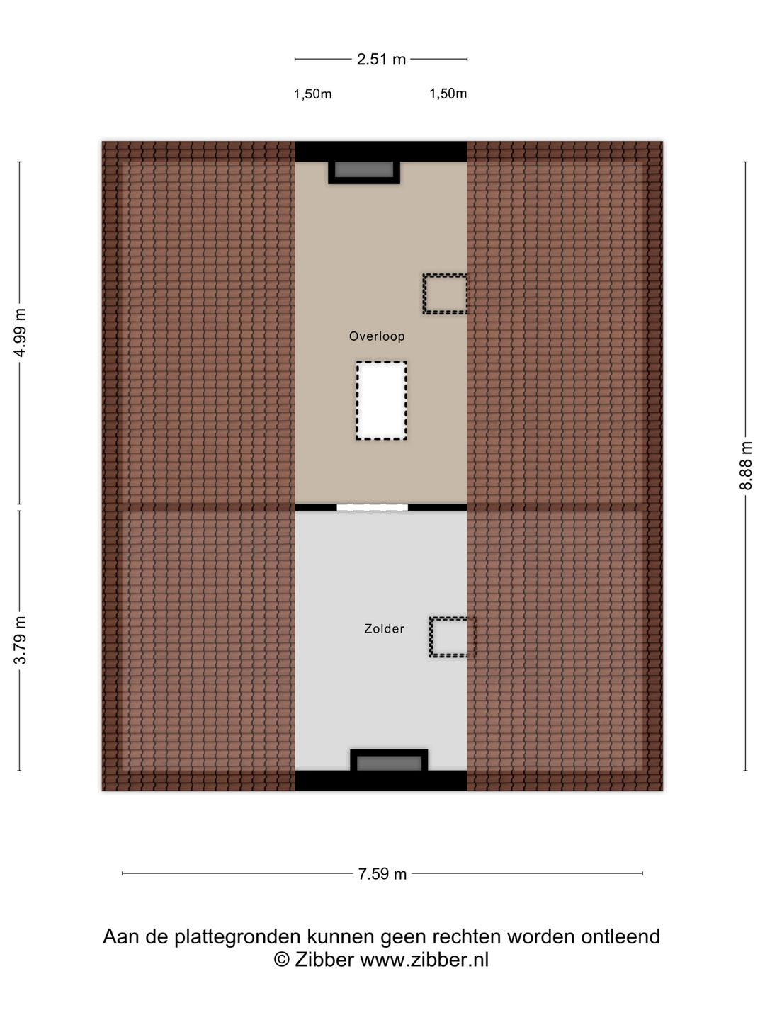 Op de overloop bevindt zich het luik met vlizotrap welke toegang geeft tot de bergzolder.