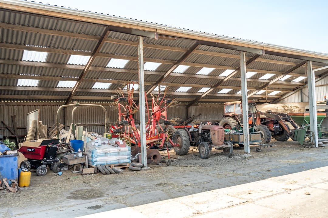 Naast de ligboxenstal staat een openfront werktuigenberging met werkplaats en jongveeverblijf. Deze is ingericht met 19 boxen voor jongvee tot circa één jaar, twee ruime strohokken en een mestkelder van circa 52 m³. Aan de zijkant is ruimte voor jongvee-iglo’s.