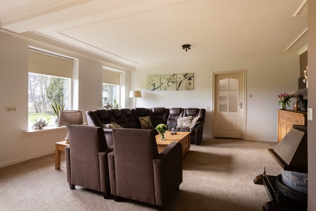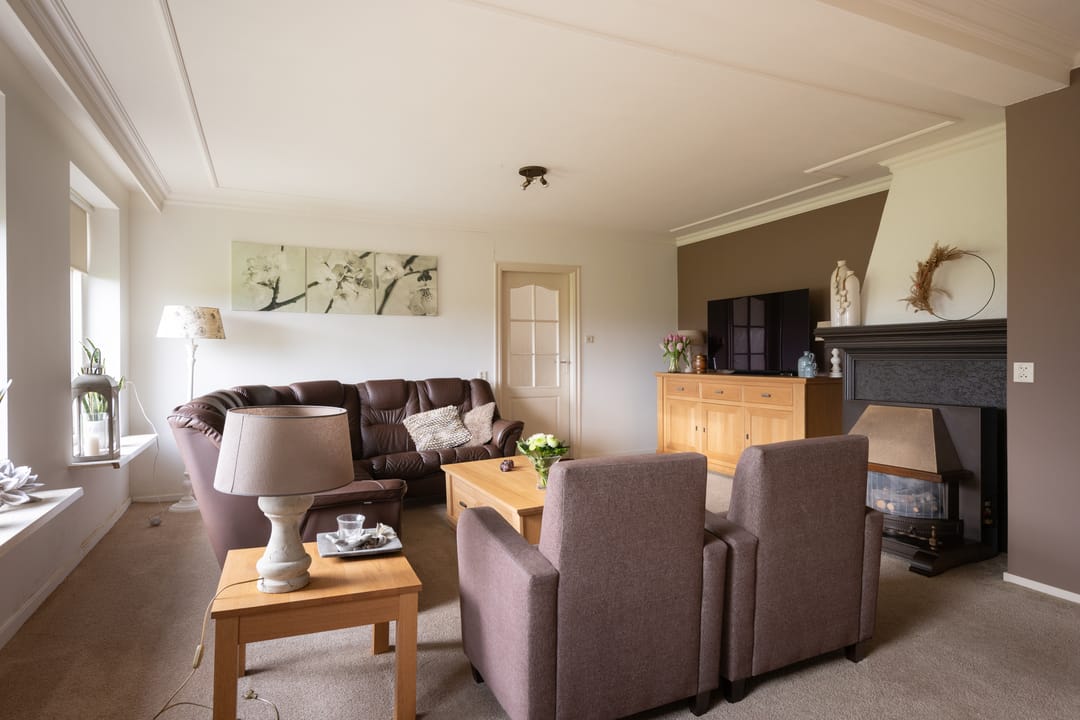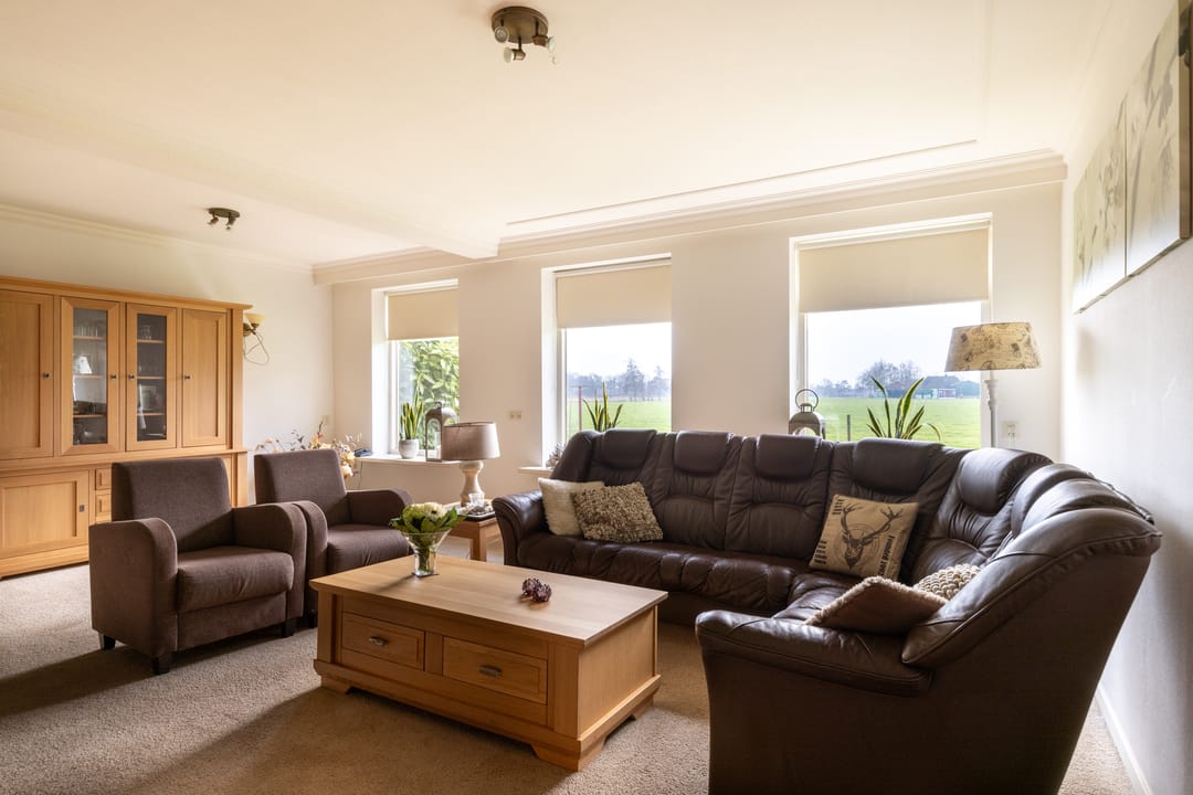 De woning beschikt over een ruime woonkamer met veel lichtinval en uitzicht over het groen, een woonkeuken en meerdere slaapkamers. Het geheel ademt rust en landelijkheid, met volop potentie om hier een eigentijdse droomplek van te maken.