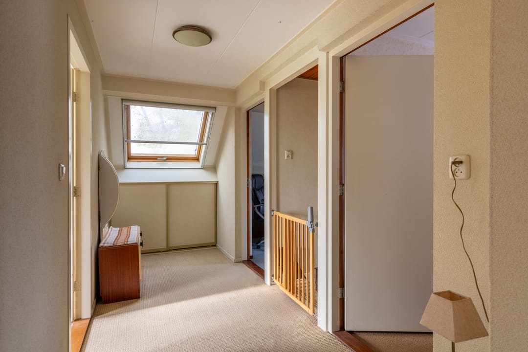 Met de houten trap komt u op de overloop, die toegang biedt aan 4 slaapkamers. Tevens is er kastruimte op deze verdieping.