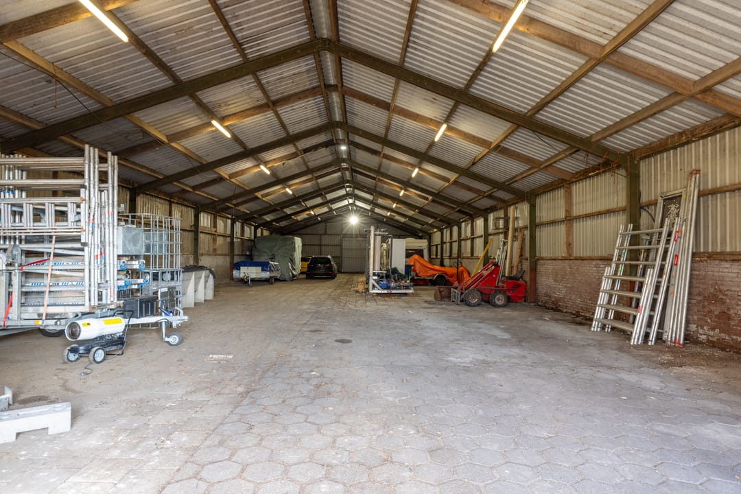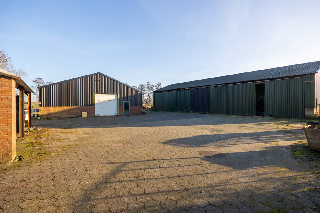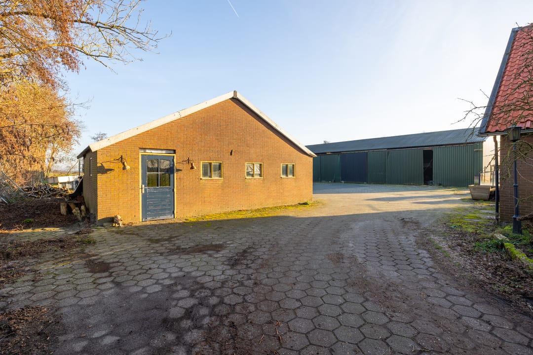 Middels de half verharde oprit bereikt u het erf waar zich naast de woning ook diverse loodsen bevinden; ideaal voor hobbyisten, dierenliefhebbers, opslag of het uitoefenen van een (kleinschalige) onderneming aan huis. Aan de voorzijde van de boerderij ligt cultuurgrond, wat het geheel extra aantrekkelijk maakt voor het hobbymatig houden van dieren.