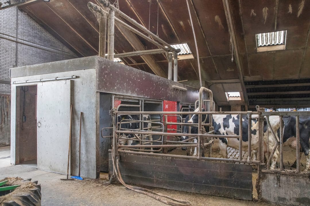 Het bedrijf beschikt over een ligboxenstal uit 1980 (A) met een aanbouw uit 2008 (B). In deze stal zijn het tanklokaal, de tankruimte en de robotruimte aan de voorzijde ondergebracht.