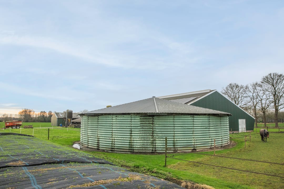 De mestsilo is in 2022 gekeurd door Appelbouw. De stalen silo is uitgevoerd met een houten kapconstructie met aluminium profielplaten. De mestsilo is niet volledig gesloten en uitgerust met een vaste elektrische mixer.