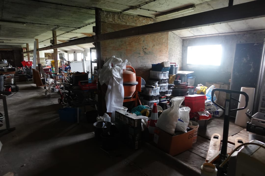 In gebruik als opslagruimte en werkplaats.