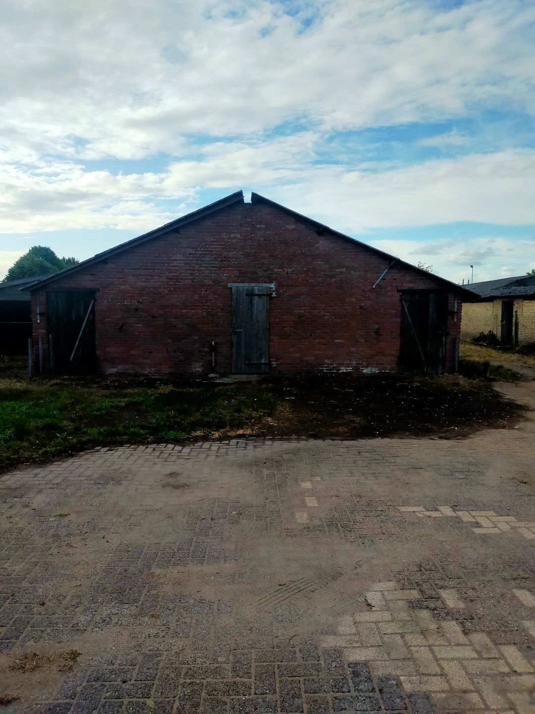 Links achter voornoemde schuur is nog een oudere stalruimte aanwezig, welke deels tegen een stal van derden staat. Deze voormalige stalruimte, afmeting van ca. 10 x 9 meter, opgetrokken met steens muren, houten spanten en houten gordingen waarop asbesthoudende platen liggen. Voorzien van enkele loopdeuren. De oude stalinrichting is verwijderd.