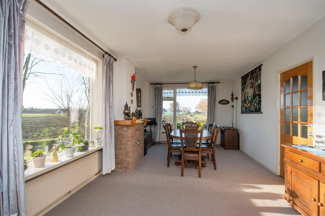 Begane grond; hal/entree met trapopgang en toegang tot de kelder, gesloten keuken voorzien van diverse inbouwapparatuur, eetkamer, ruime en zonnige woonkamer met twee grote zithoeken en een mooi uitzicht rondom, hal met kastruimten, toilet, bijkeuken, doorgang naar het achterhuis.