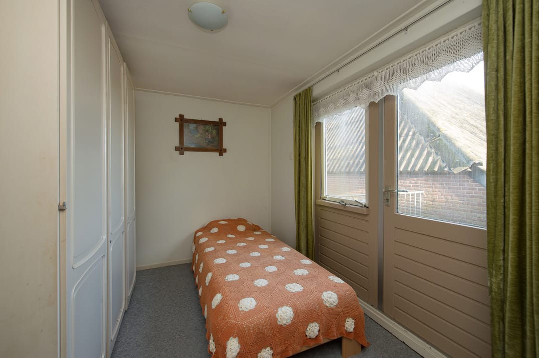Direct achter de woning bevindt zich het achterhuis. Dit achterhuis is traditioneel opgebouwd middels een houten gebintconstructie voorzien van sporen kap, gedekt met asbesthoudende golfplaten. Het gebouw heeft een oppervlakte van 25 x 17 meter. De muren betreffen steens gemetselde muren, het gebouw is voorzien van meerdere houten loopdeuren en draaideuren. De vloeren van het gebouw bestaan nog grotendeels uit de originele lemen ondergrond, ter plaatse van de ligboxen is een mestkelder met betonroosters gevestigd, deze mestkelder heeft een opslagcapaciteit voor circa 36 m3 drijfmest. Het achterhuis doet momenteel dienst als opslagruimte, in het verleden zijn hier ook kalveren gehuisvest.