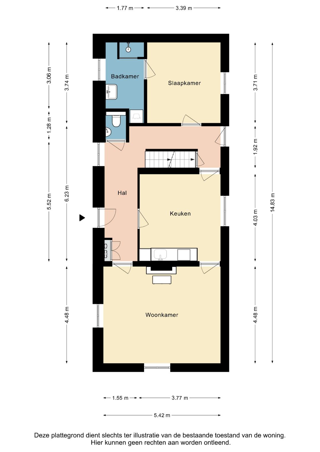 Alle maten zijn bij benadering weergegeven. Deze aanbieding mag slechts worden gezien als een uitnodiging tot bezichtiging. Een afspraak hiertoe kunt u maken bij ons kantoor.