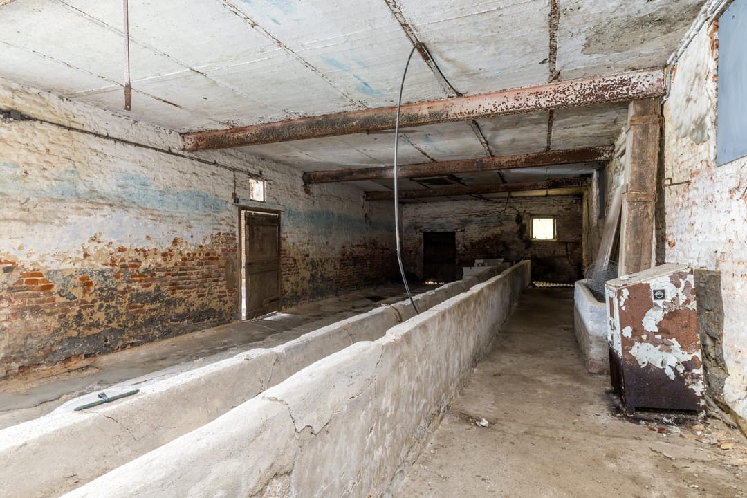 Via de cour heeft men toegang tot het bakhuis (nog voorzien gemetselde oven) en de voormalige jongveestal beide gelegen aan de straatzijde. Aangrenzend aan de jongveestal ligt de voormalige schuur, koeienstal paardenstal. De schuur in de noordzijde van het complex heeft een fraaie werkhoogte.