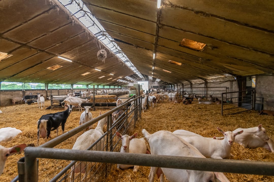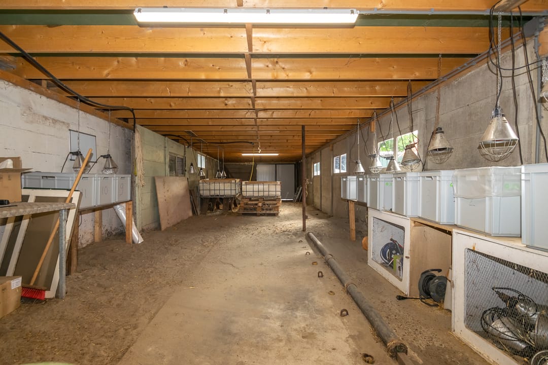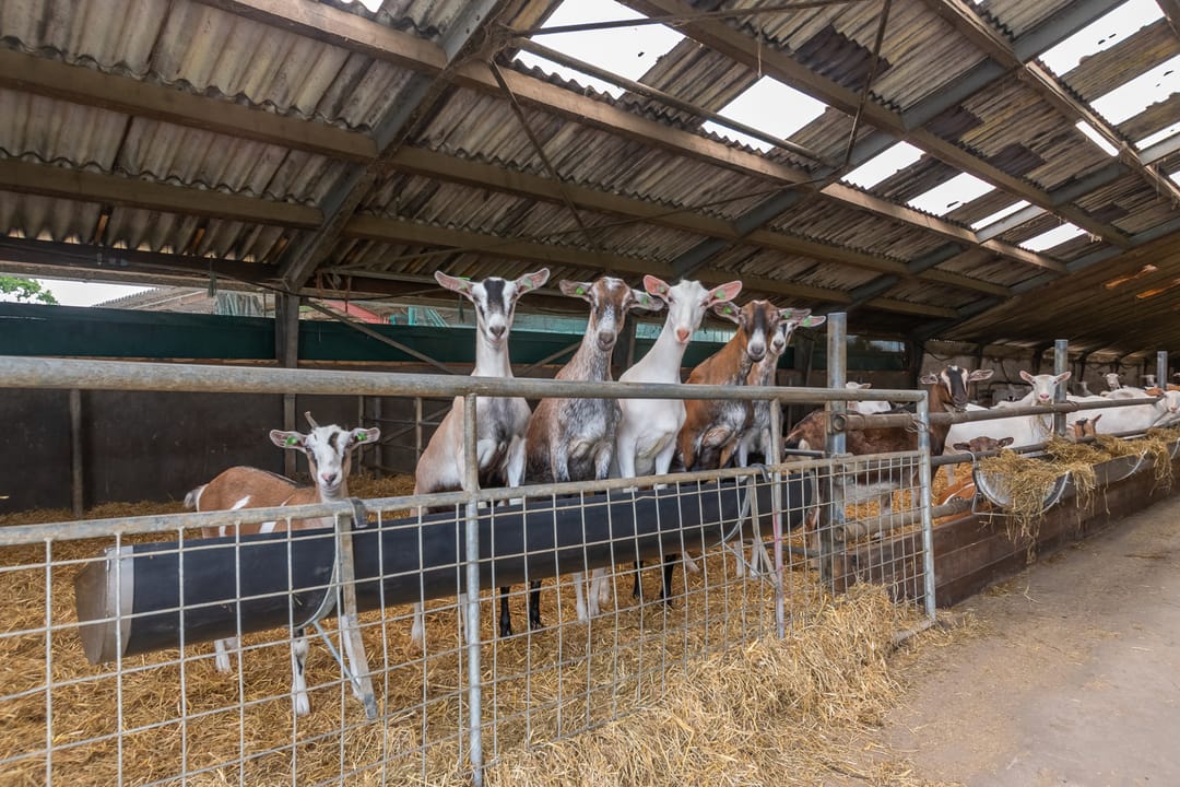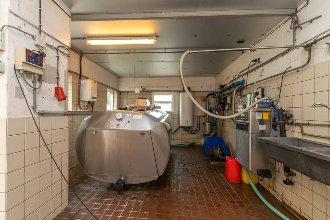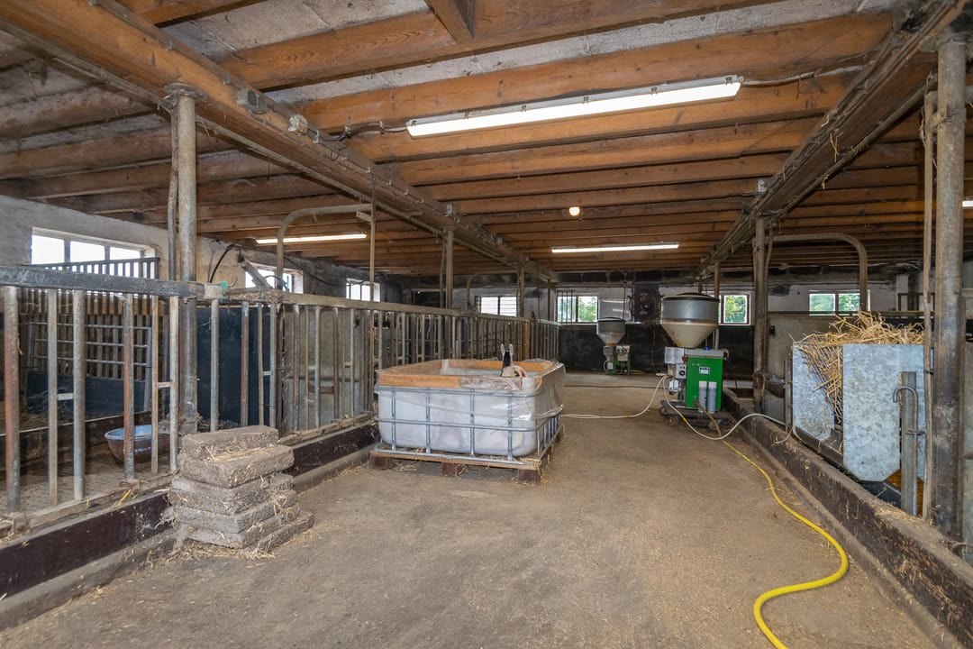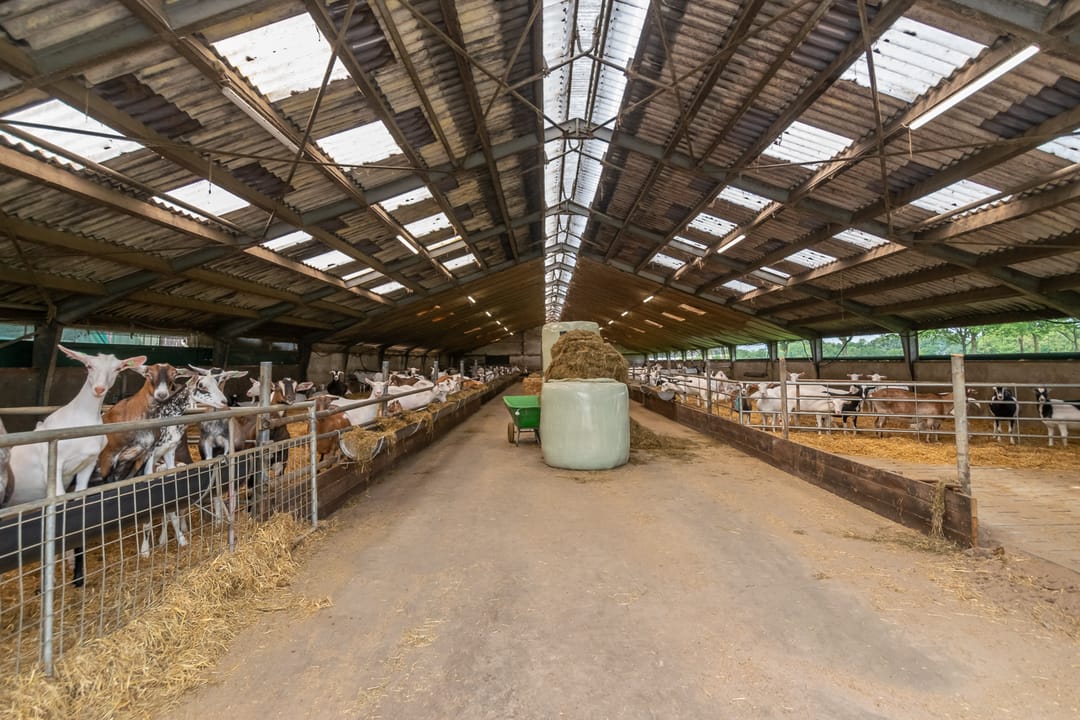 Indeling en inrichting: U indeling met een centrale voergang en aan weerszijden ruimte voor het huisvesten van vee. Aan de voorzijde van de ligboxenstal bevindt zich een 2 x 16 melkstal (± in 2021 geplaatst, tweedehands) en een melktank met een capaciteit van 1.600 liter. Naast de stal bevindt zich een tussenbouw die momenteel gebruikt wordt voor huisvesting van de jongste geiten.